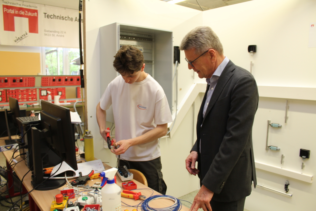 Neben den Juroren konnten auch Gäste den jungen Nachwuchstalenten über die Schulter schauen und mehr über die modernen Ausbildungen in der Industrie erfahren. Diese Gelegenheit nützten u.a. WK-Präsident Jürgen Mandl, Michael Velmeden, Obmann der Sparte Industrie der WK-Kärnten sowie Gerhard Oswald, Obmann der WK-Bezirksstelle Wolfsberg.