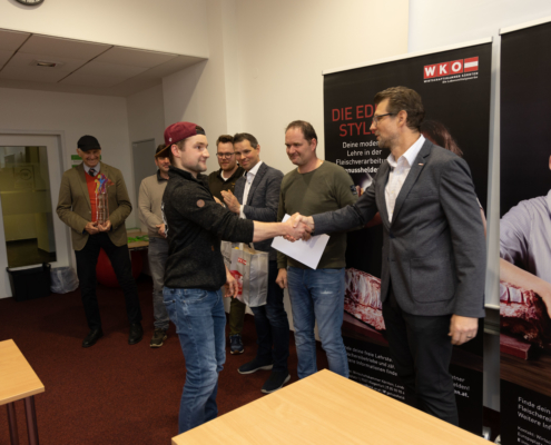 Bei der Siegerehrung wiesen Bundesrat Manfred Mertel und die Juroren eingehend auf die Besonderheiten und den Stellenwert des Berufes hin: „Als Fleischer ist man stets gefordert, denn mit dem Ende der Lehre ist der Lernprozess keinesfalls abgeschlossen. Jobsicherheit und beste Karrierechancen warten auf die erfolgreichen Jungfleischer:innen.