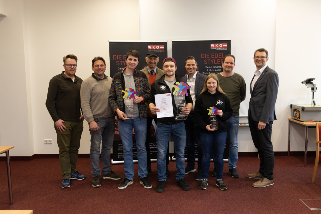Die besten neun Jungfleischer:innen traten beim Landeslehrlingswettbewerb an und wurden von einer Fachjury – bestehend den Fleischermeistern Wolfgang Mossegger, Michael Koch und Thomas Plautz – einer strengen Bewertung unterzogen. Von den Lehrlingen wurde einiges abverlangt: eine Rinderkeule ausbeinen, eine Fleischplatte herrichten, eine verkaufsfertige Wurstplatte legen sowie Frankfurter selbst herstellen. Nach der Bewertung durch die Jury stand fest, dass alle neun Teilnehmer:innen durch ihre gezeigten Leistungen punktemäßig knapp beieinanderliegen: