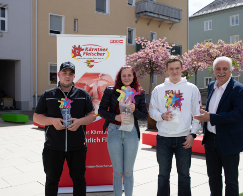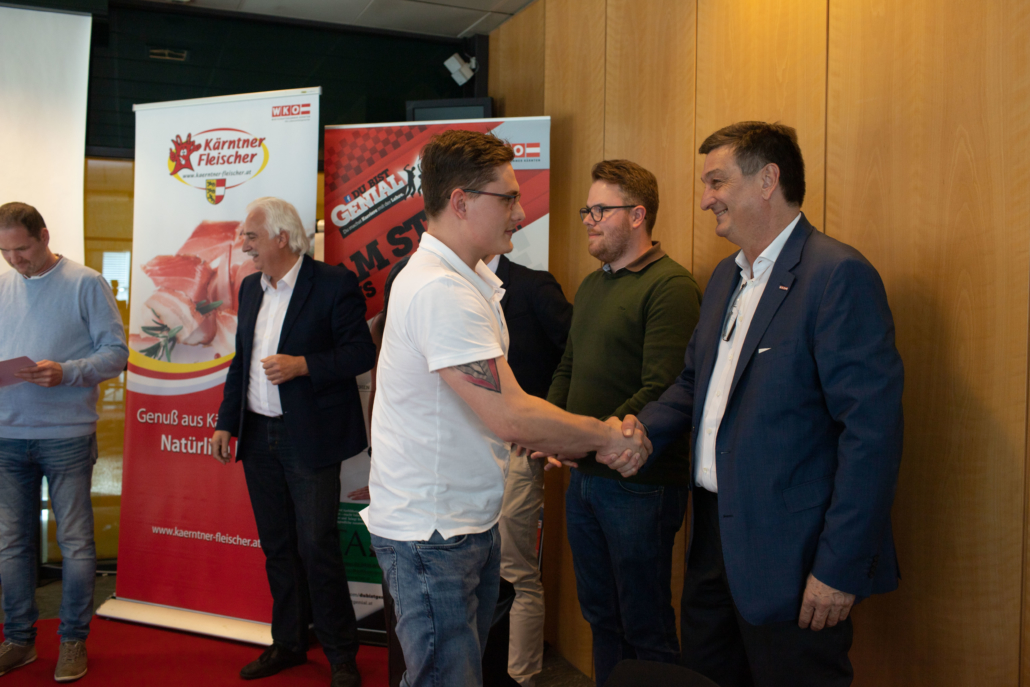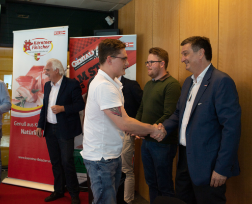Bei der Siegerehrung wiesen Präsident Jürgen Mandl und Innungsmeister Raimund Plautz eingehend auf die Besonderheiten und den Stellenwert des Berufes hin: „Als Fleischerin und Fleischer ist man stets gefordert, denn mit dem Ende der Lehre ist der Lernprozess keinesfalls abgeschlossen. Jobsicherheit und beste Karrierechancen warten auf die erfolgreichen Jungfleischerinnen und -fleischer.“ Innungsmeister Plautz gratulierte nicht nur den Lehrlingen herzlichst zu ihren Leistungen, sondern auch den Lehrbetrieben zur hervorragenden Ausbildung.