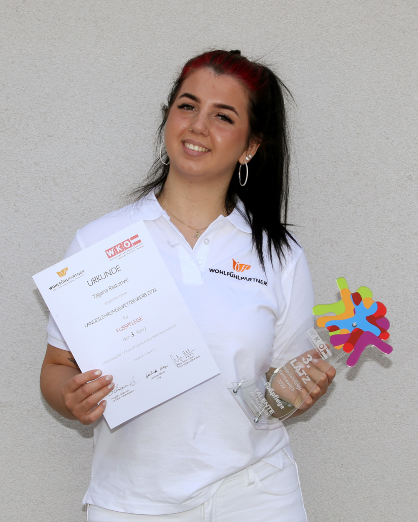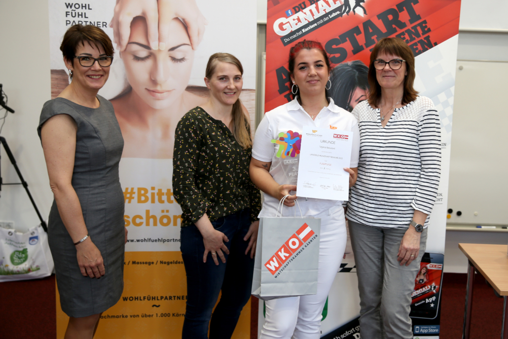Unsere Kärntner Wohlfühlpartner Lehrlinge aus dem Bereich Fußpflege überzeugten am 5. Mai 2022 beim Landeslehrlingswettbewerb 2022 mit überaus beeindruckenden Ergebnissen.