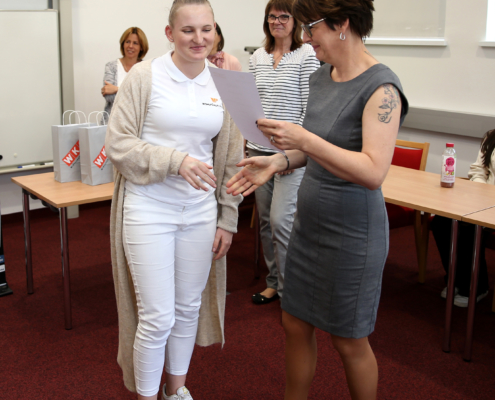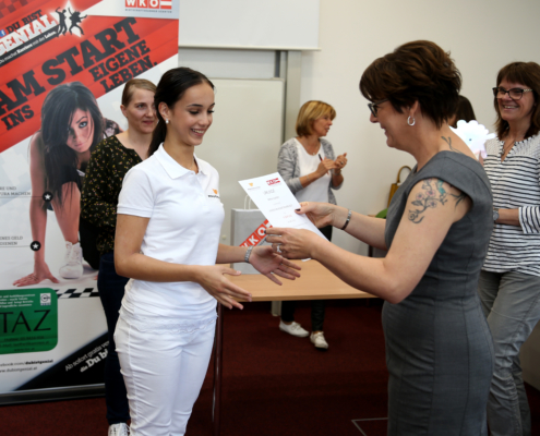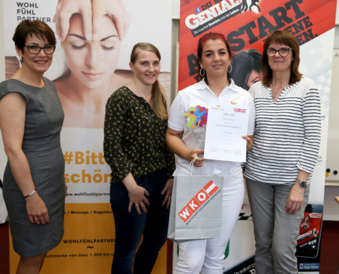 Von Applaus begleitet wurden den Kandidatinnen die Urkunden, die Trophäen, gesponsert von der Talenteakademie Kärnten sowie Shopping-Gutscheine und AMS-Gutscheine überreicht. Durch ihre ausgezeichneten Leistungen qualifizierten sich die zwei Siegerinnen der Wettbewerbe für den Bundeslehrlingswettbewerb, der heuer am 12. Juni in Linz ausgetragen wird. Viel Anerkennung und große Wertschätzung gab es auch für die Ausbildungsbereitschaft der Kärntner Unternehmer – den Kärntner Wohlfühlpartnern!
