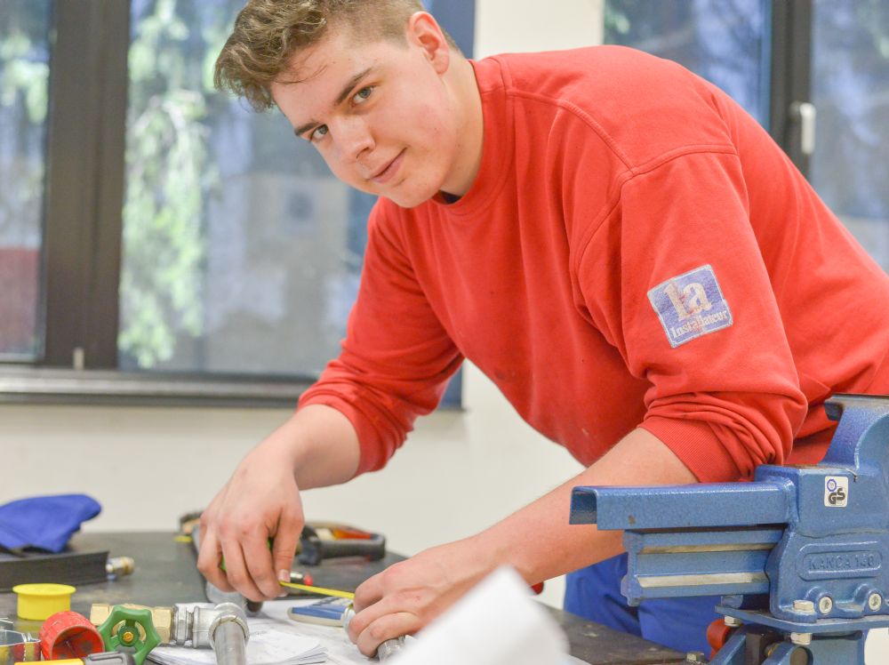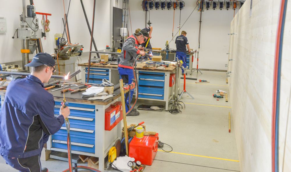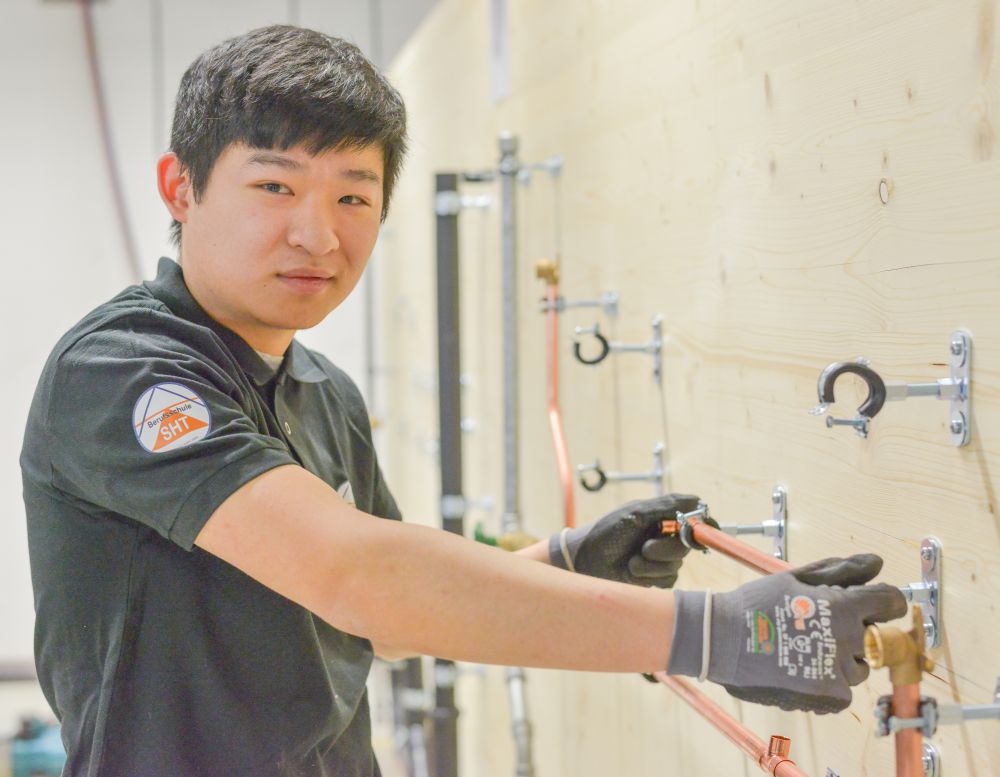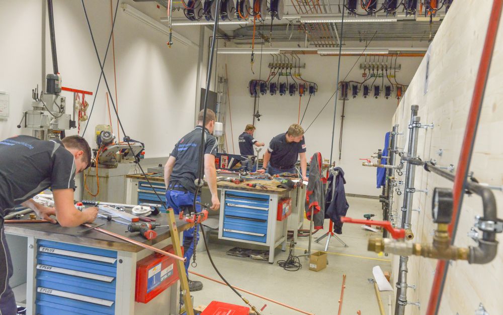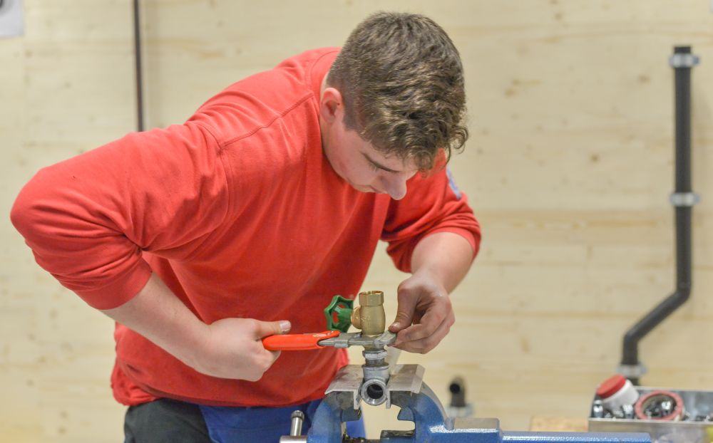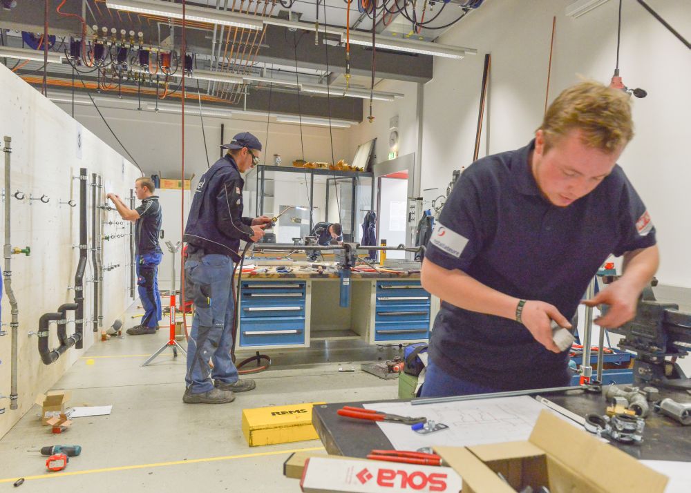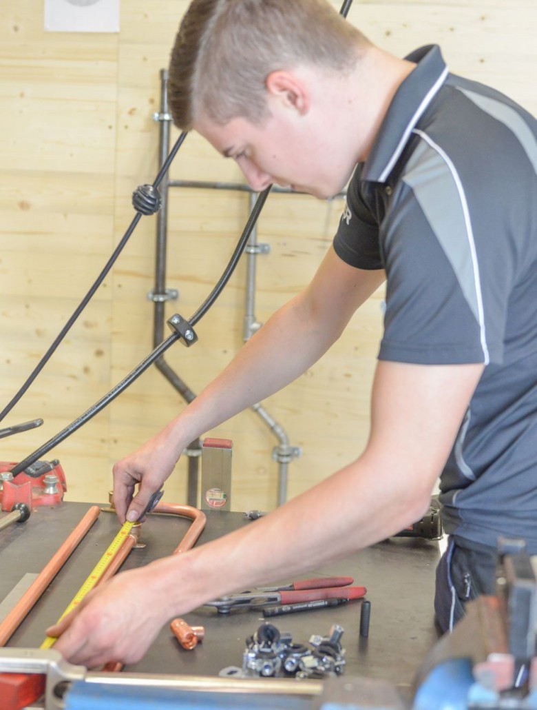 Zum Beweis ihres Könnens mussten die Teilnehmer nach einem vorgegebenen Plan eine Kalt- und Warmwasser-Kupferinstallation, eine Kaltwasserleitung aus verzinktem Stahlrohr, eine Gasleitung mit schwarzem Stahlrohr und ein Kunststoff-Abflusssystem in der Zeit von 12 Stunden abliefern.