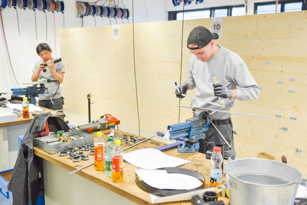 Dabei kamen alle Arbeitstechniken zur Anwendung, wie Weich- und Hartlöten, Schweißen, Warm- und Kaltbiegen. Kriterien für die Beurteilung durch die Juroren waren unter anderem die Maßhaltigkeit, die Qualität der Ausführung, der Materialverbrauch sowie die Dichtheit der Leitungen.