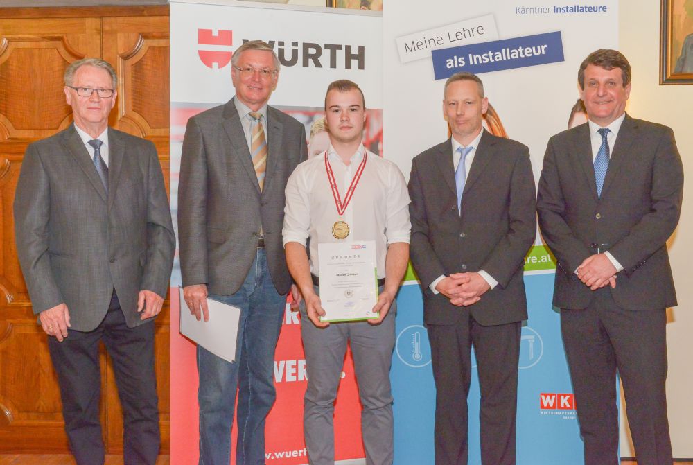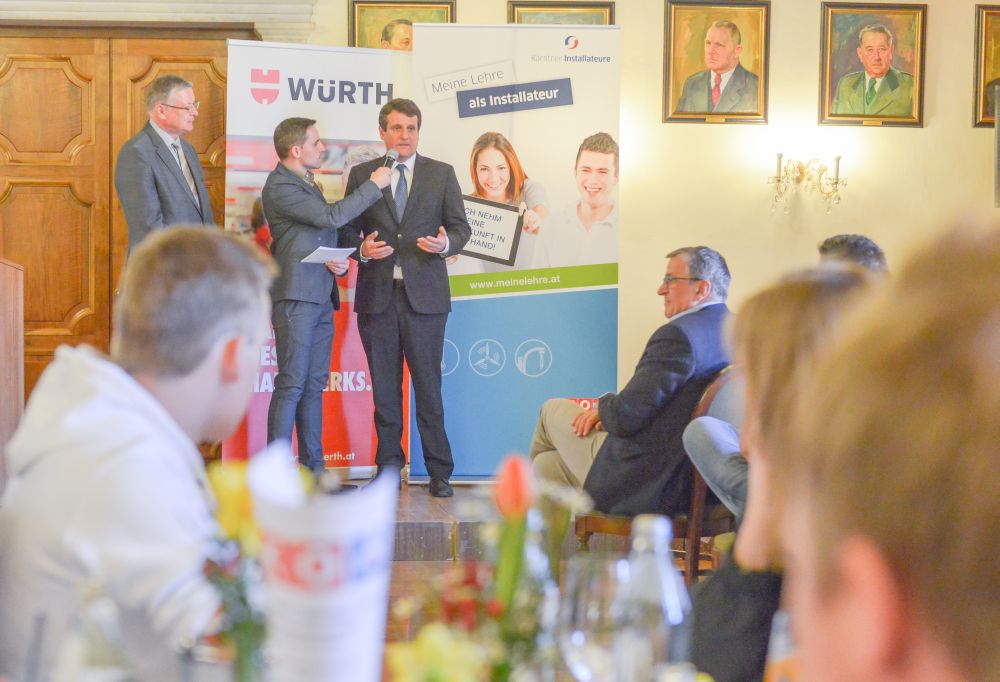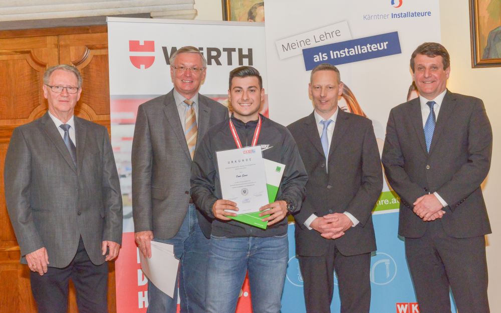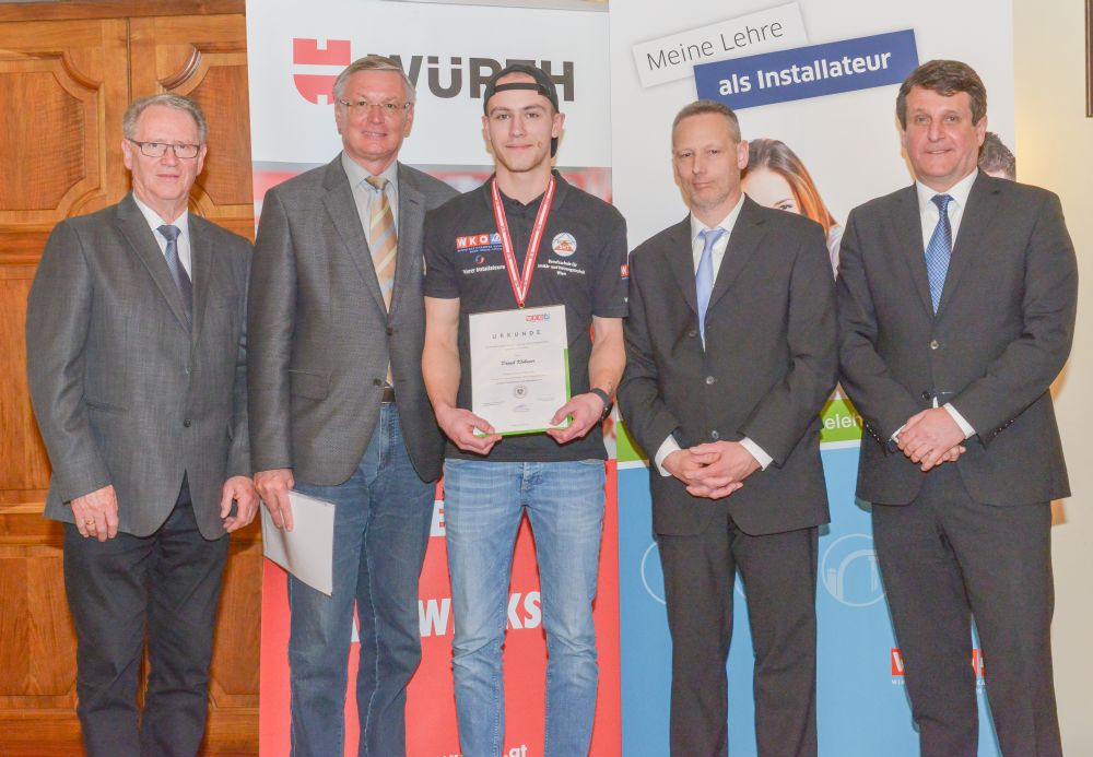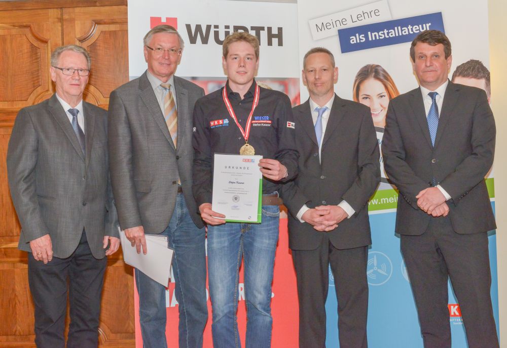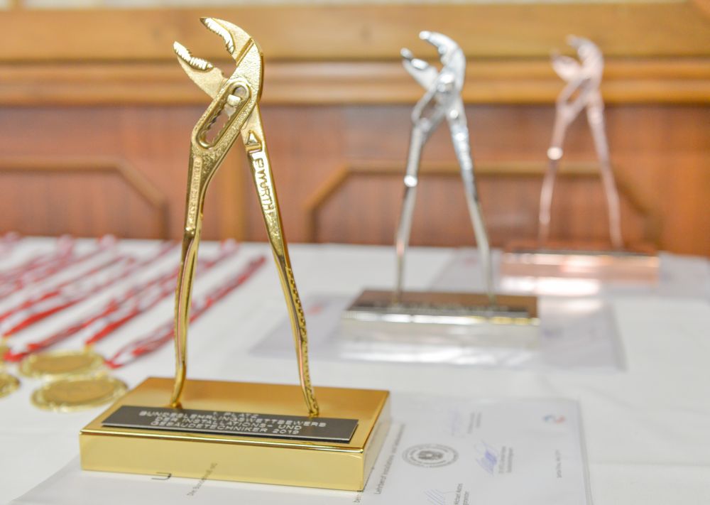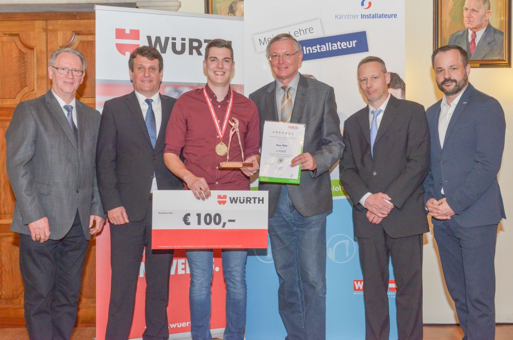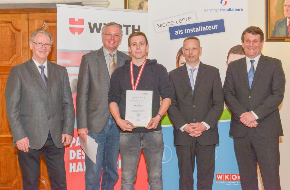 Bundesinnungsmeister-Stellvertreter KommR Karl Pech, Bundeslehrlingswart DI (HTL) Gerald Kopsa und Landesinnungsmeister der Kärntner Installateure Dr. DI Gerhard Oswald MBA gratulierten den Gewinnern im Rahmen der Siegerehrung recht herzlich und überreichten neben Urkunden und Gold-, Silber- und Bronzetrophäen Preisgelder der Bundesinnung, WIFI-Bildungsgutscheine und Sachpreise.