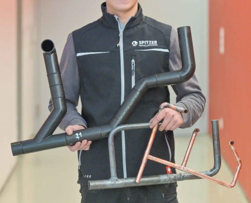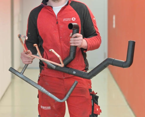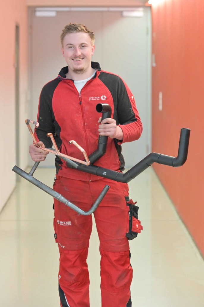 Es war ein Wettbewerbstag, der es in sich hatte: Fünf Stunden lang mussten die jungen Männer unter den wachsamen Augen der Expertenjury, bestehend aus vier Vertretern der Landesinnung und der Fachberufsschule, Stahlleitungen schweißen und warmbiegen, Kupferleitungen löten sowie Kunststoffleitungen unterschiedlich bearbeiten. Die Optik, die Exaktheit der Ausführung und die Sauberkeit wurden dabei von der Jury bewertet. Besonderes Augenmerk legten sie dabei auf die Ausarbeitung und Maßgenauigkeit. Das verwendete Material wurde von der Firma ÖAG kostenlos zur Verfügung gestellt.