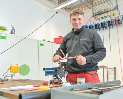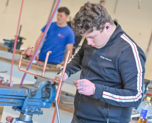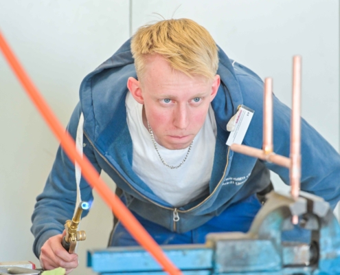 Stahlleitungen schweißen, Kupferrohre biegen oder Kunststoffleitungen bearbeiten – beim Landeslehrlingswettbewerb der Installations- und Gebäudetechniker bewiesen die Teilnehmenden, wie viel Talent im Nachwuchs steckt.