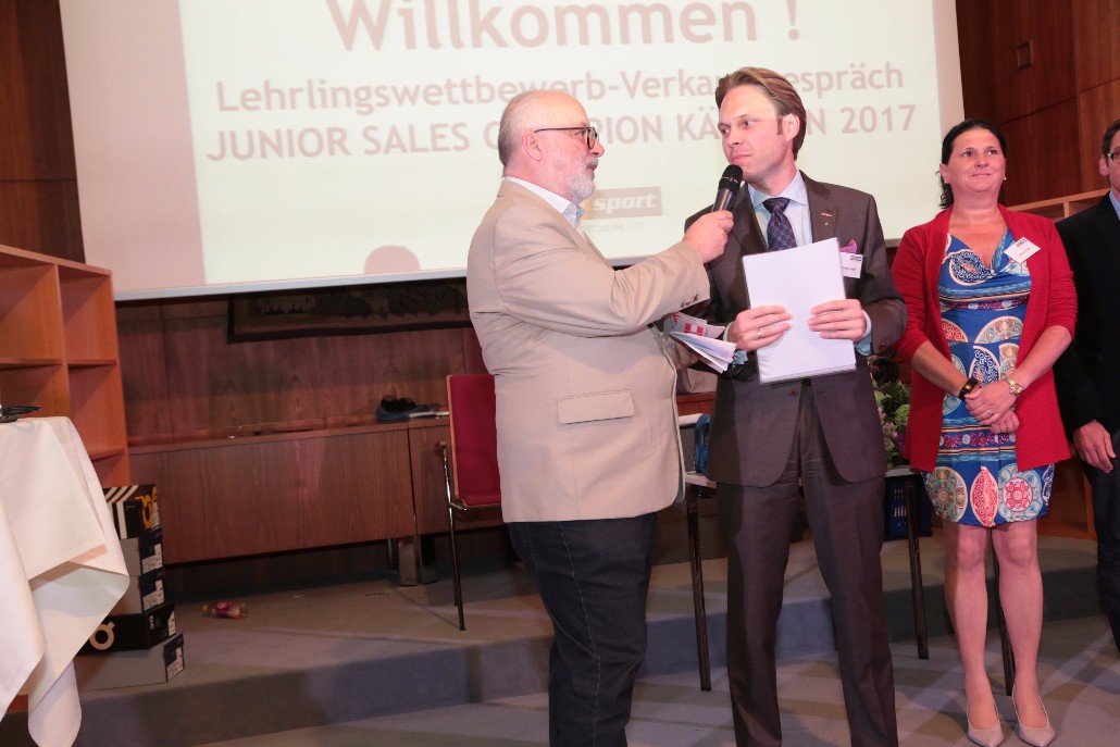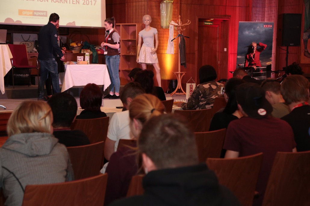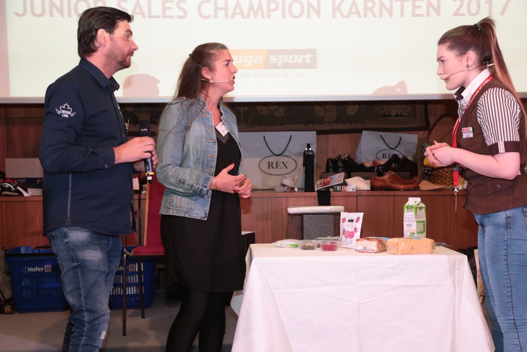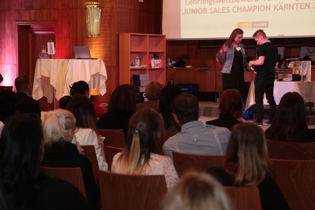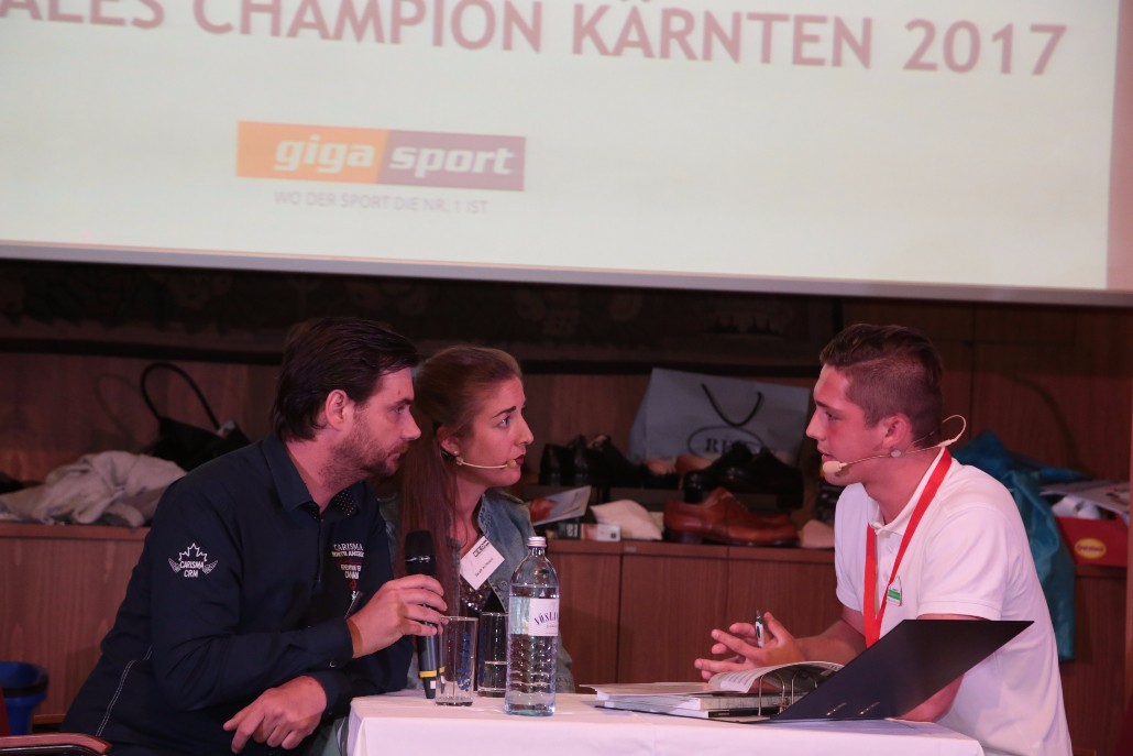 „Es gibt in diesem Bewerb eigentlich keine Verlierer. Jeder der mitgemacht hat, hat gewonnen, hat für seine berufliche Laufbahn Wichtiges geleistet, denn er hat sich der Herausforderung in einem Wettbewerb gestellt“, erklärte Spartenobmann Raimund Haberl. Die Nominierung der ersten drei Plätze fiel nicht leicht. Den 1. Platz belegte Lukas Hoffmann von der Firma Hervis sports. Er verkaufte ein E-Bike. Auf Platz 2 folgte Nicolas Moser von der Firma Intersport Winninger. Er verkaufte erfolgreich Laufschuhe und den 3. Platz erzielte Roberta Brabilla, die italienische Mode anbot. Ihr Lehrbetrieb ist die Firma Vianello. Die Gewinner erhielten Einkaufsgutscheine von Giga-Sport, Klagenfurt.