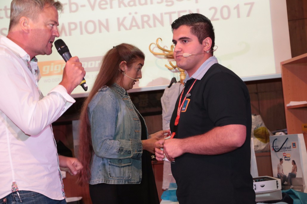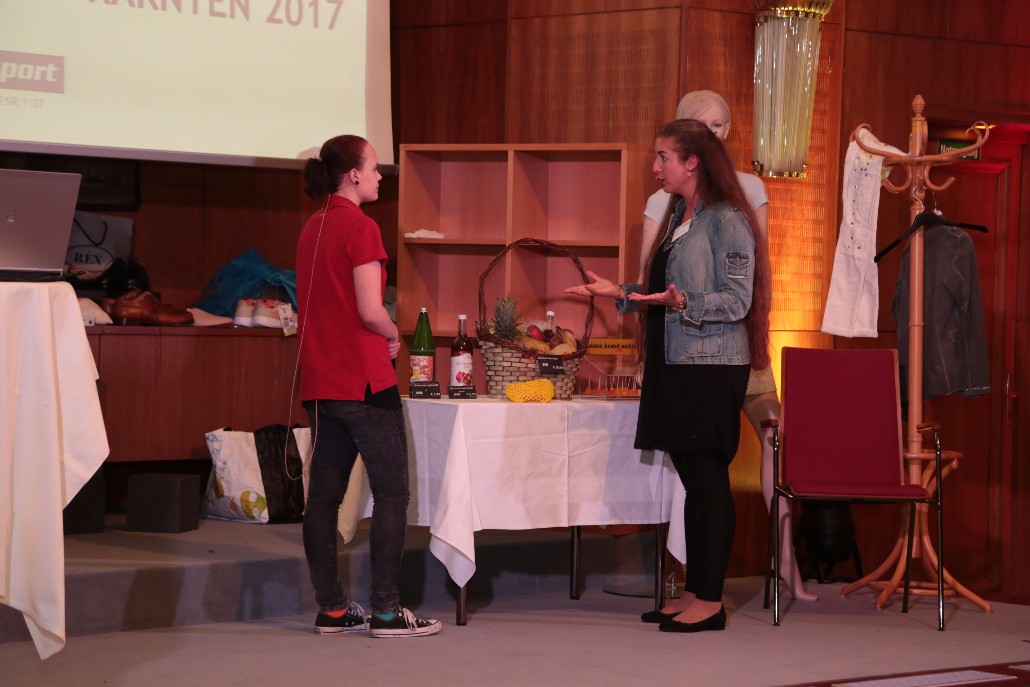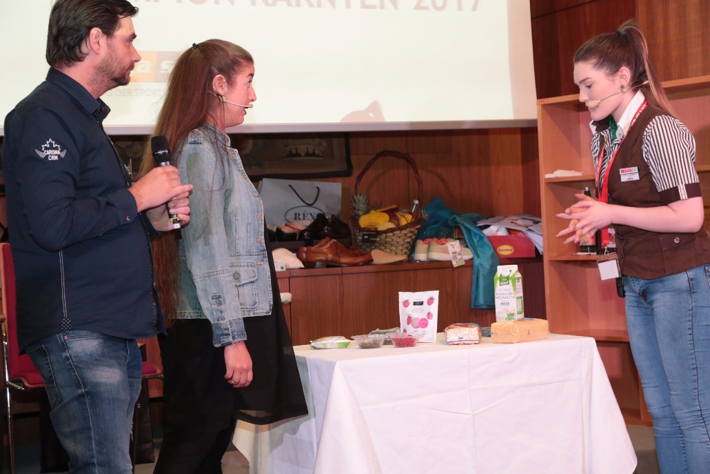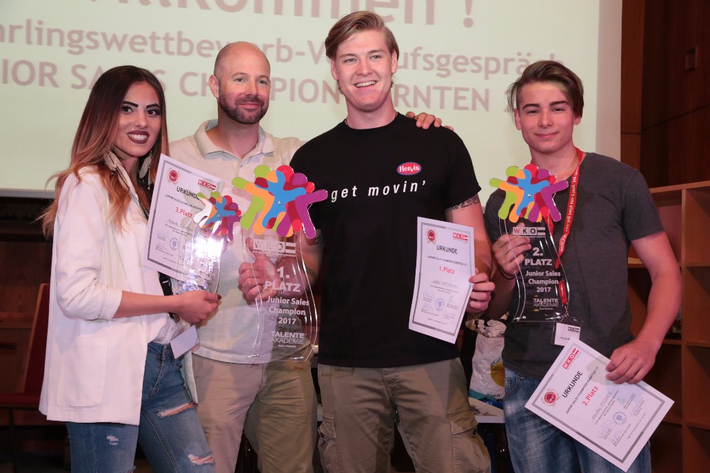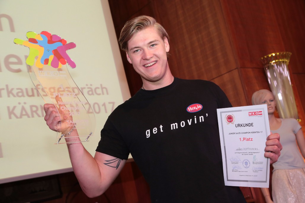 „Es gibt in diesem Bewerb eigentlich keine Verlierer. Jeder der mitgemacht hat, hat gewonnen, hat für seine berufliche Laufbahn Wichtiges geleistet, denn er hat sich der Herausforderung in einem Wettbewerb gestellt“, erklärte Spartenobmann Raimund Haberl. Die Nominierung der ersten drei Plätze fiel nicht leicht. Den 1. Platz belegte Lukas Hoffmann von der Firma Hervis sports. Er verkaufte ein E-Bike. Auf Platz 2 folgte Nicolas Moser von der Firma Intersport Winninger. Er verkaufte erfolgreich Laufschuhe und den 3. Platz erzielte Roberta Brabilla, die italienische Mode anbot. Ihr Lehrbetrieb ist die Firma Vianello. Die Gewinner erhielten Einkaufsgutscheine von Giga-Sport, Klagenfurt.