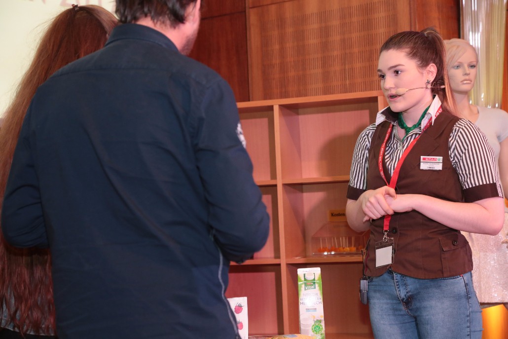 Zusätzliche Kriterien wie fremdsprachiger Störkunde oder Ladendiebstahl, stellten die jungen Kandidaten auf eine harte Probe, die aber von allen gemeistert werden konnte. Beurteilt wurden weiters Warenpräsentation, eloquente Argumentation, der Verkaufsabschluss und der Gesamteindruck, in dem die eigen Persönlichkeitsentwicklung zum Ausdruck kommen sollte.