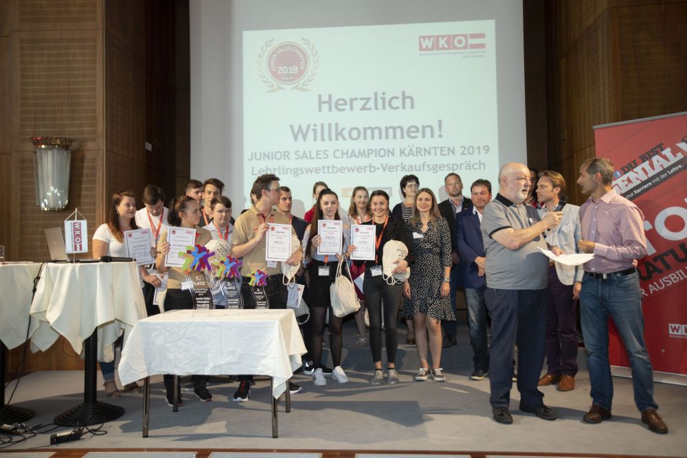 Bereits zum 15. Mal veranstaltete die Sparte Handel am Mittwoch, 05.06.2019 den Junior Sales Champion. 13 Lehrlinge aus ganz Kärnten stellten sich einer fachkundigen Jury, die sich aus Unternehmern und Vertretern der Kärntner Berufsschulen zusammensetzte.