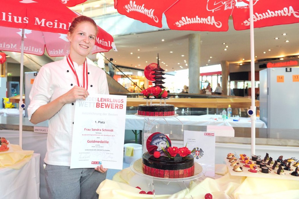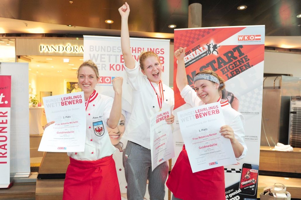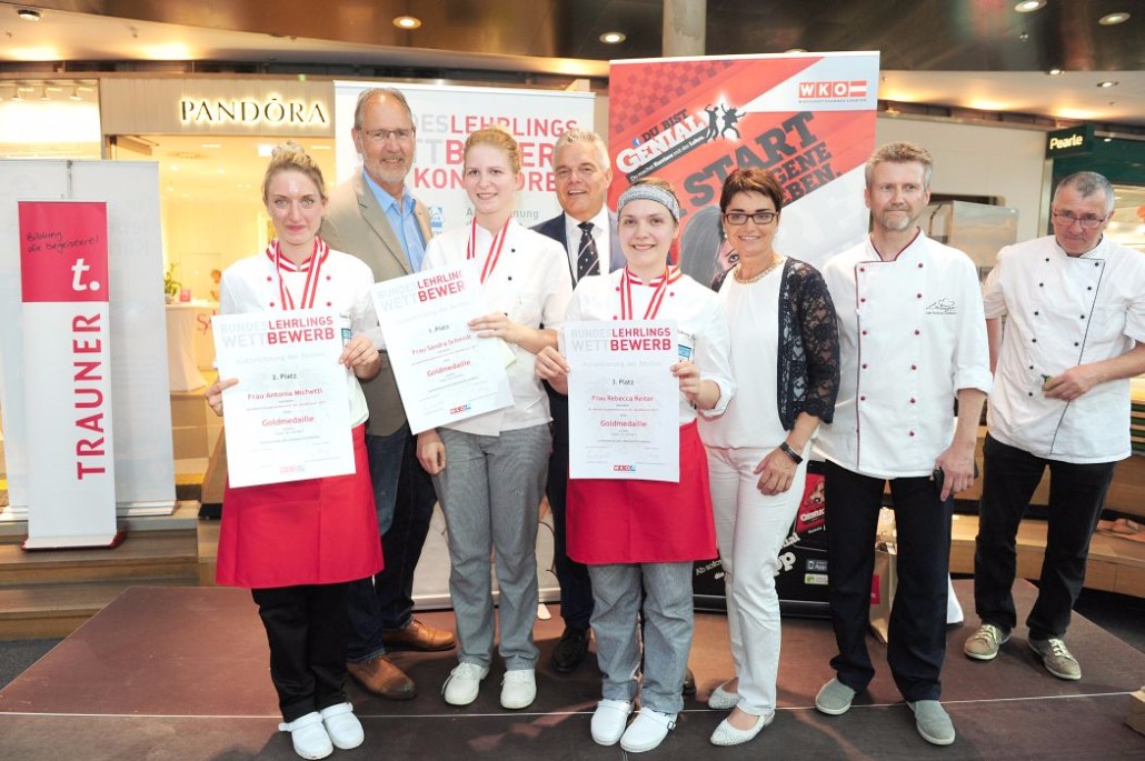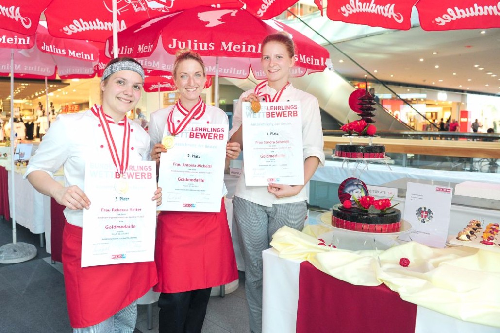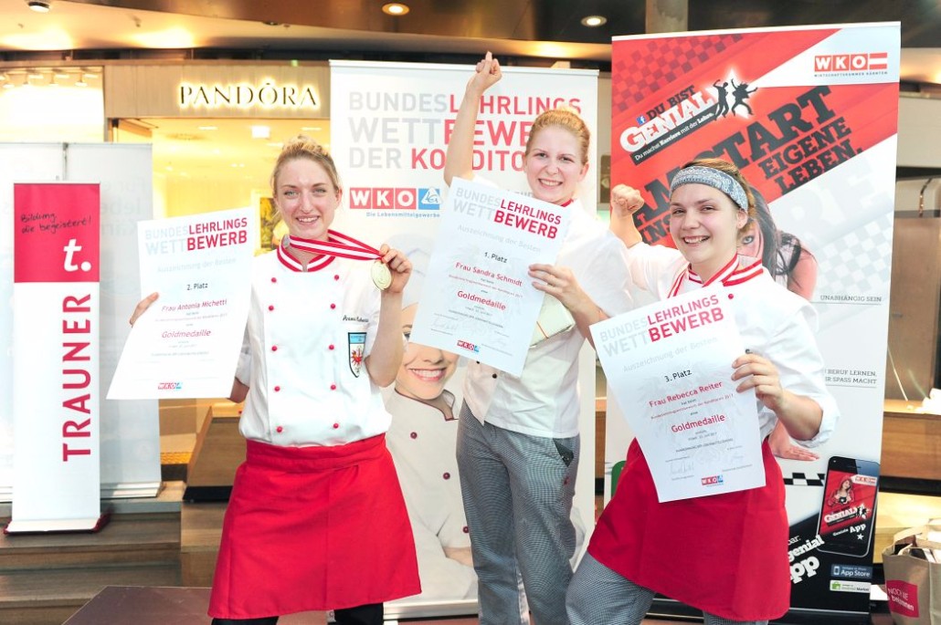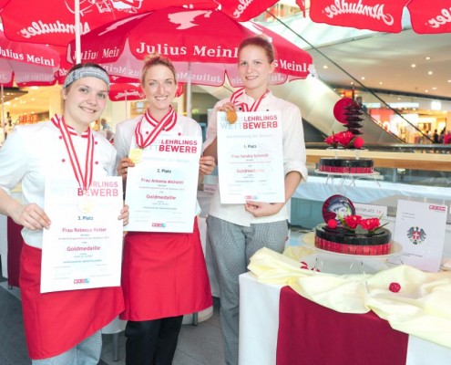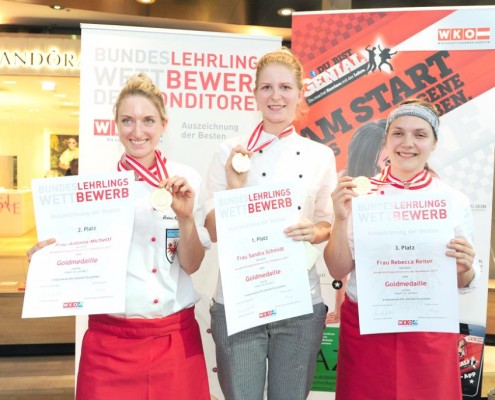 Den Sieg holte sich Sandra Schmidt vom Lehrbetrieb Kurkonditorei Oberlaa in Wien. Der zweite Platz ging an die Tirolerin Antonia Michetti vom Lehrbetrieb Konditorei Valier in Innsbruck. Die Drittplatzierte kam auch aus Tirol – Rebecca Reiter vom Lehrbetrieb Bäckerei Konditorei Kurz GmbH in Ischgl. Die Wettbewerbsteilnehmerinnen erhielten insgesamt sieben Goldmedaillen, fünf Silbermedaillen und fünf Bronzemedaillen. Eine der begehrten Silbermedaillen gewann die Kärntnerin Nadine Koenders vom Lehrbetrieb Konditorei Fahrnberger in Klagenfurt. Innungsmeister Lienbacher strich die hervorragenden Leistungen der Teilnehmerinnen hervor: „Hier zeigt sich wieder einmal ganz eindeutig, dass wir uns um die Zukunft unseres ‚süßen‘ Handwerks keine Sorgen machen müssen. Wenn unser Nachwuchs mit solchem Enthusiasmus, solcher Kreativität und diesem Können ans Werk geht, kann man sich auf das Kommende nur freuen.“