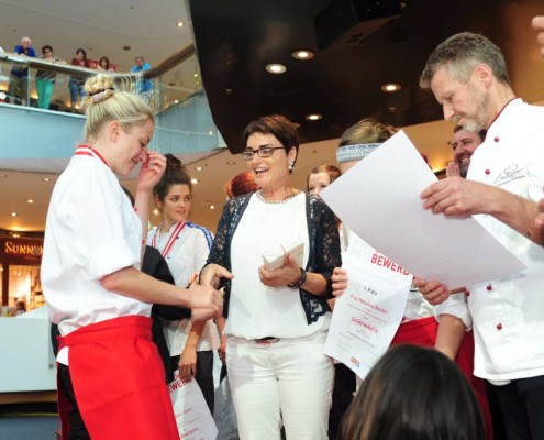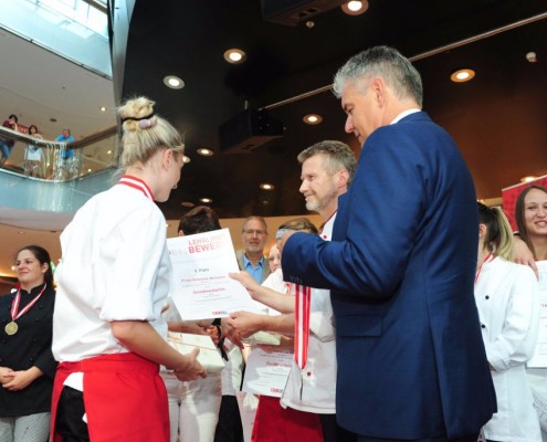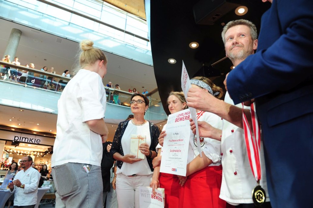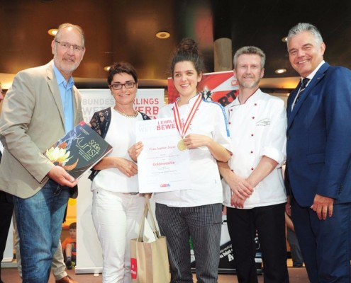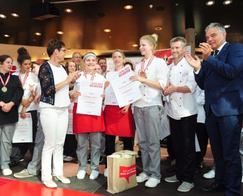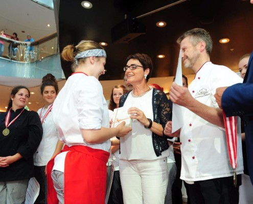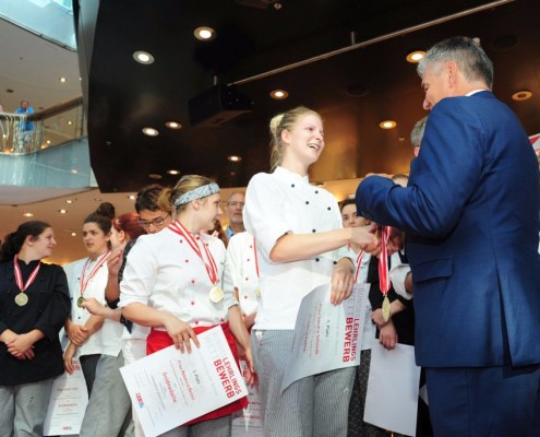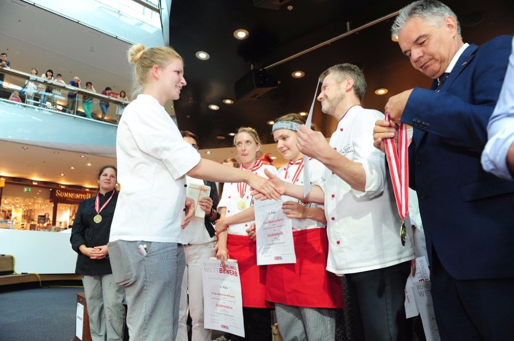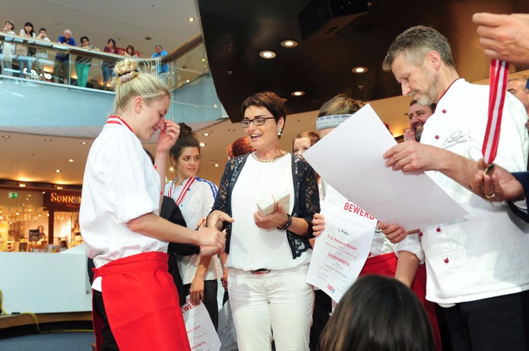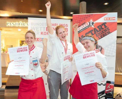 Den Sieg holte sich Sandra Schmidt vom Lehrbetrieb Kurkonditorei Oberlaa in Wien. Der zweite Platz ging an die Tirolerin Antonia Michetti vom Lehrbetrieb Konditorei Valier in Innsbruck. Die Drittplatzierte kam auch aus Tirol – Rebecca Reiter vom Lehrbetrieb Bäckerei Konditorei Kurz GmbH in Ischgl. Die Wettbewerbsteilnehmerinnen erhielten insgesamt sieben Goldmedaillen, fünf Silbermedaillen und fünf Bronzemedaillen. Eine der begehrten Silbermedaillen gewann die Kärntnerin Nadine Koenders vom Lehrbetrieb Konditorei Fahrnberger in Klagenfurt. Innungsmeister Lienbacher strich die hervorragenden Leistungen der Teilnehmerinnen hervor: „Hier zeigt sich wieder einmal ganz eindeutig, dass wir uns um die Zukunft unseres ‚süßen‘ Handwerks keine Sorgen machen müssen. Wenn unser Nachwuchs mit solchem Enthusiasmus, solcher Kreativität und diesem Können ans Werk geht, kann man sich auf das Kommende nur freuen.“