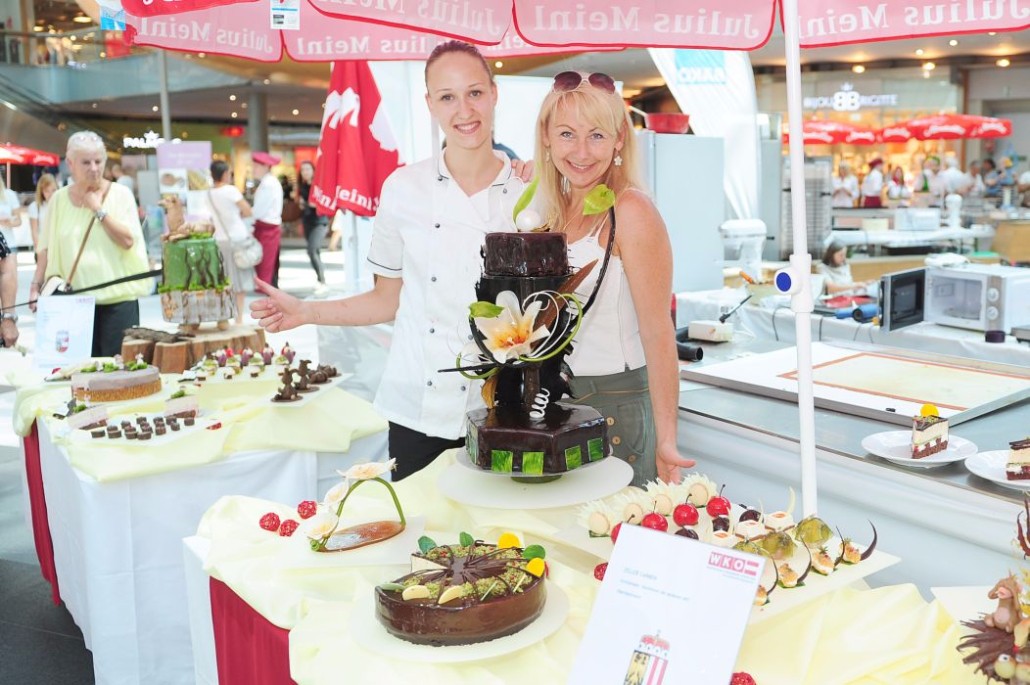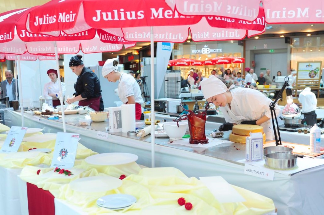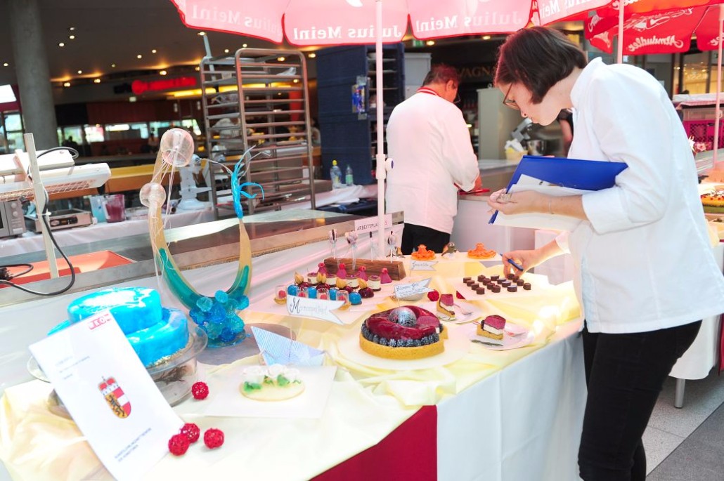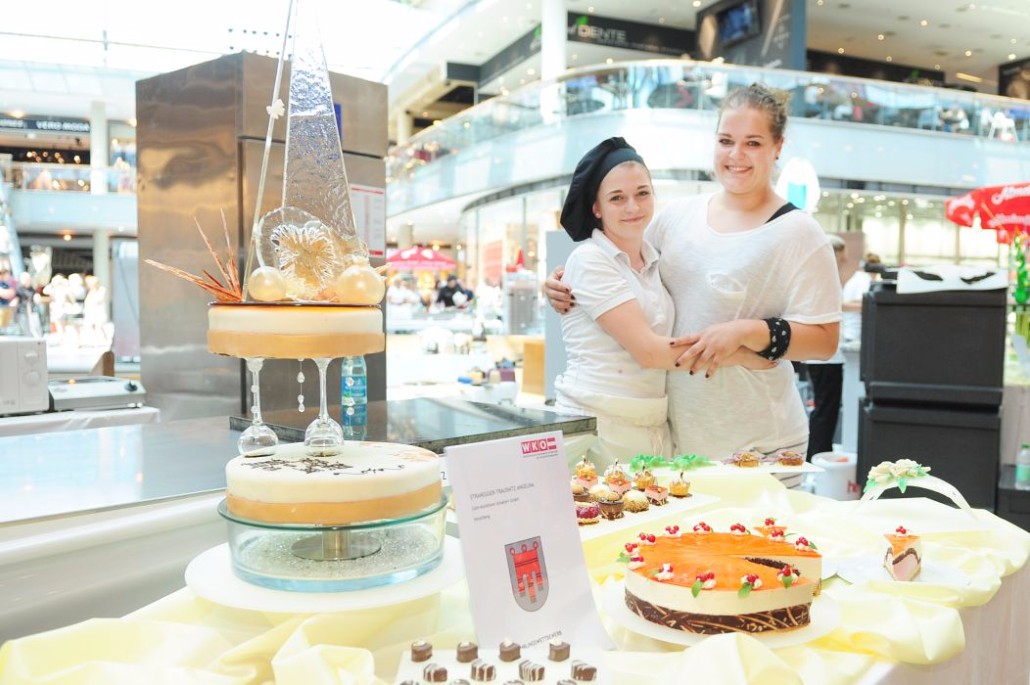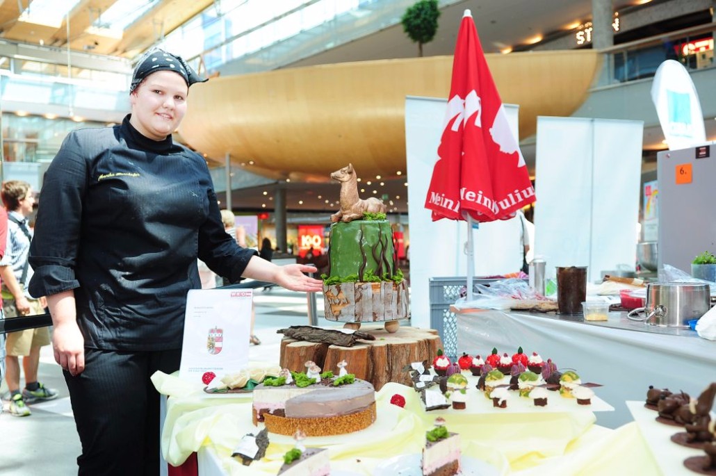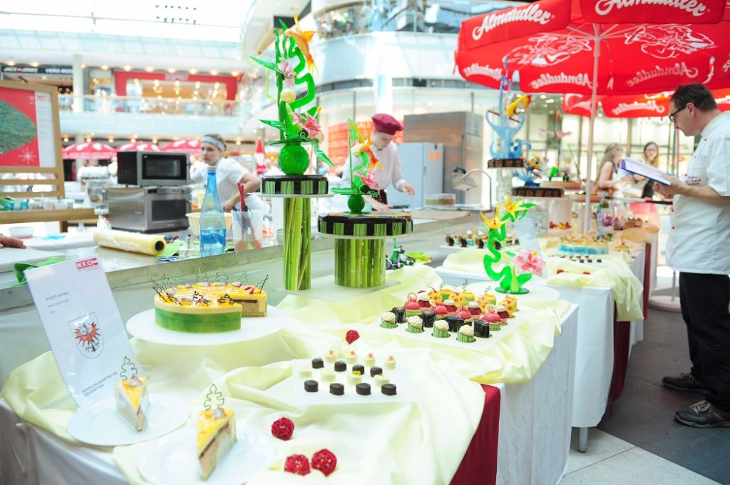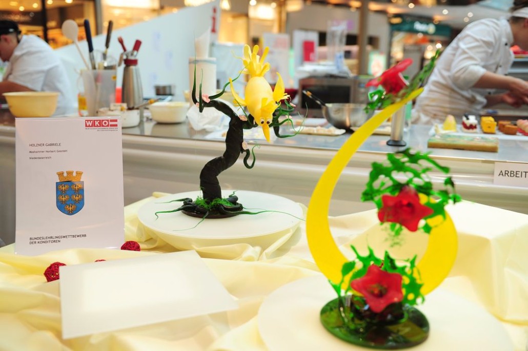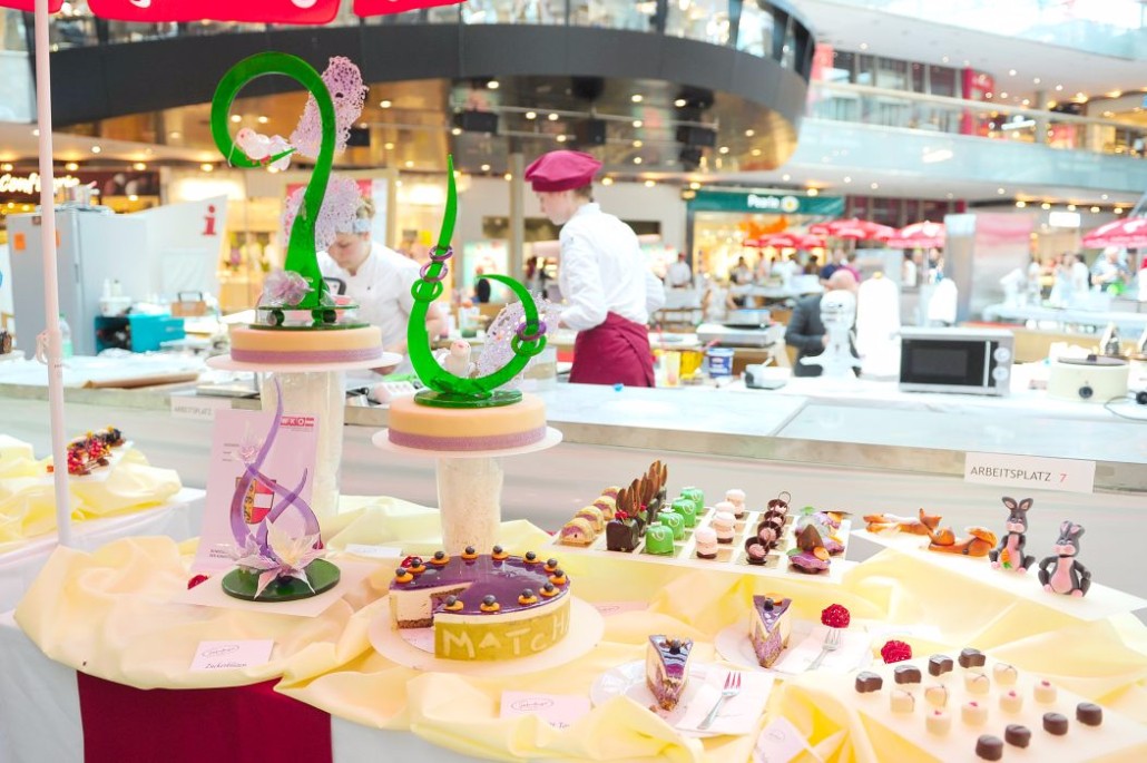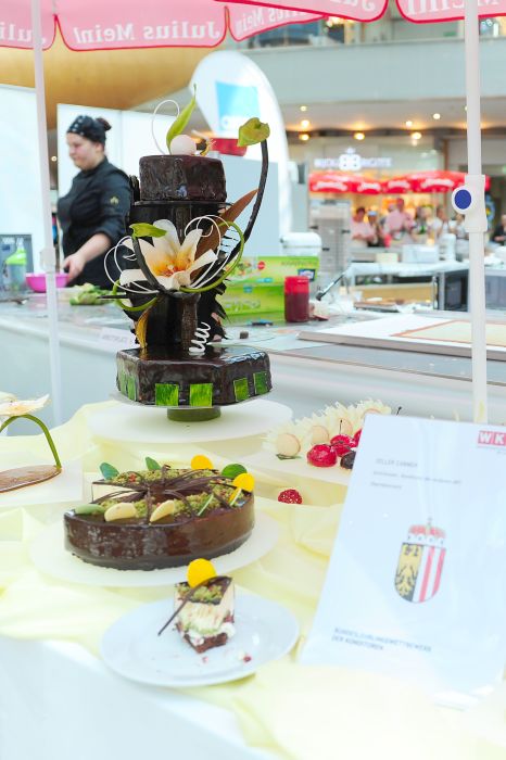 Der Bundeslehrlingswettbewerb der Konditoren fand dieses Jahr im ATRIO Shopping Center in Villach statt. 17 Konditorinnen aus allen neun Bundesländern kreierten Kunstwerke aus Schokolade, Zucker und Marzipan. Die ausschließlich weiblichen Teilnehmer behielten trotz Ablenkungen des Shopping Centers und regem Interesse der Besucher einen kühlen Kopf und zauberten großartige Kreationen in folgenden Kategorien: Aufsatztorten, Aufschnitt-Torten, Modellierarbeiten, Pralinen und Stückdesserts.