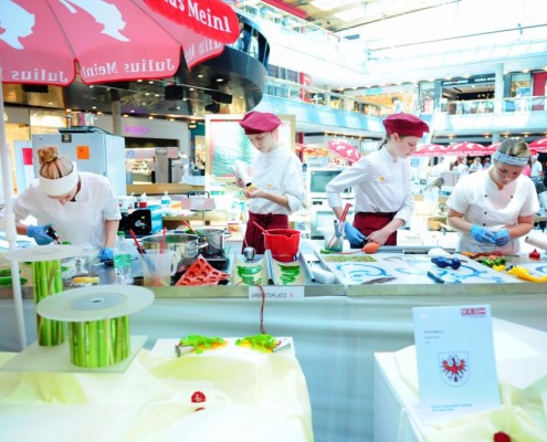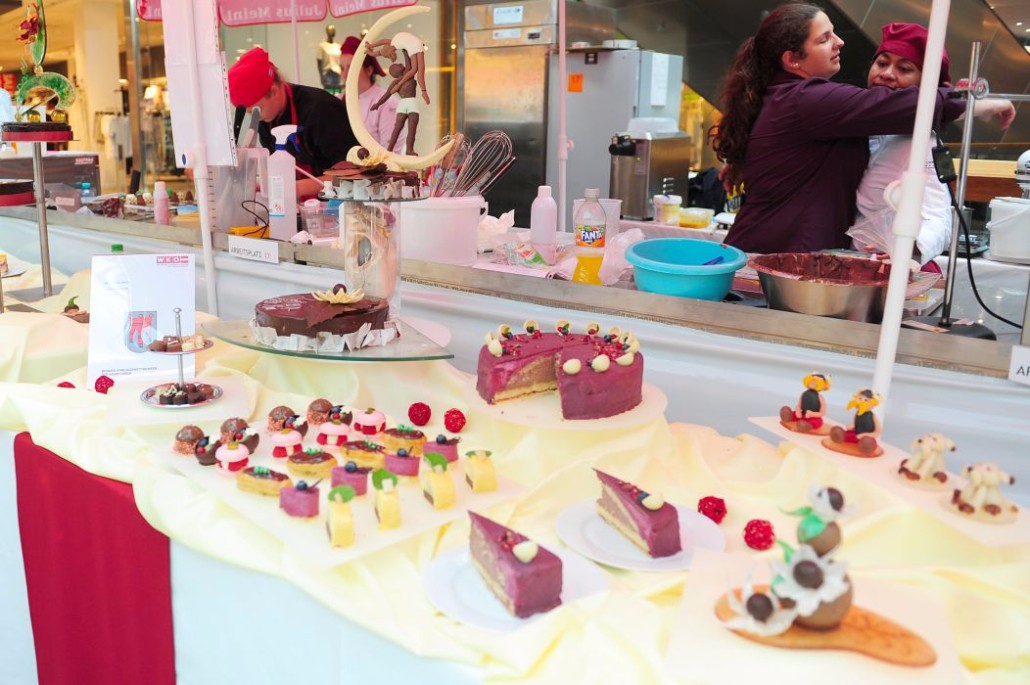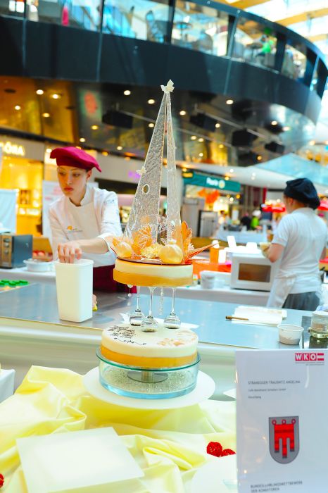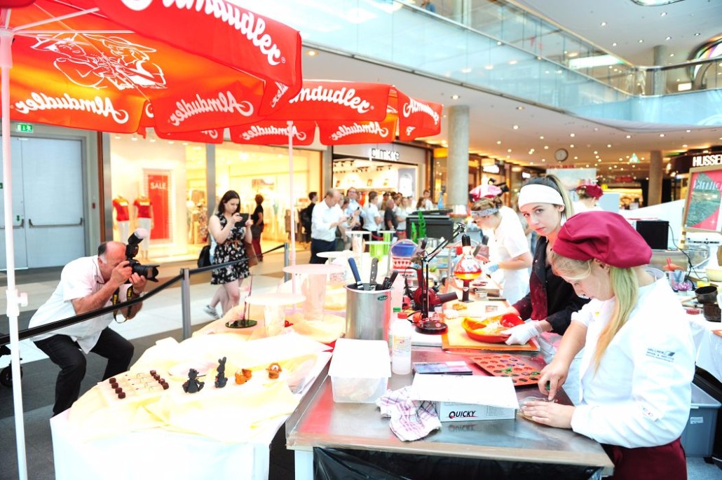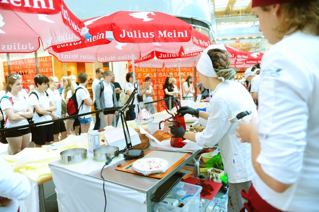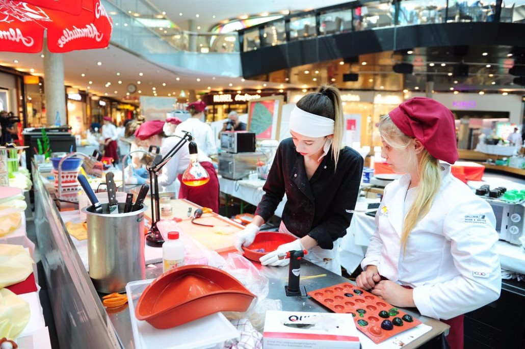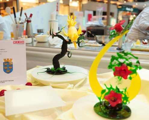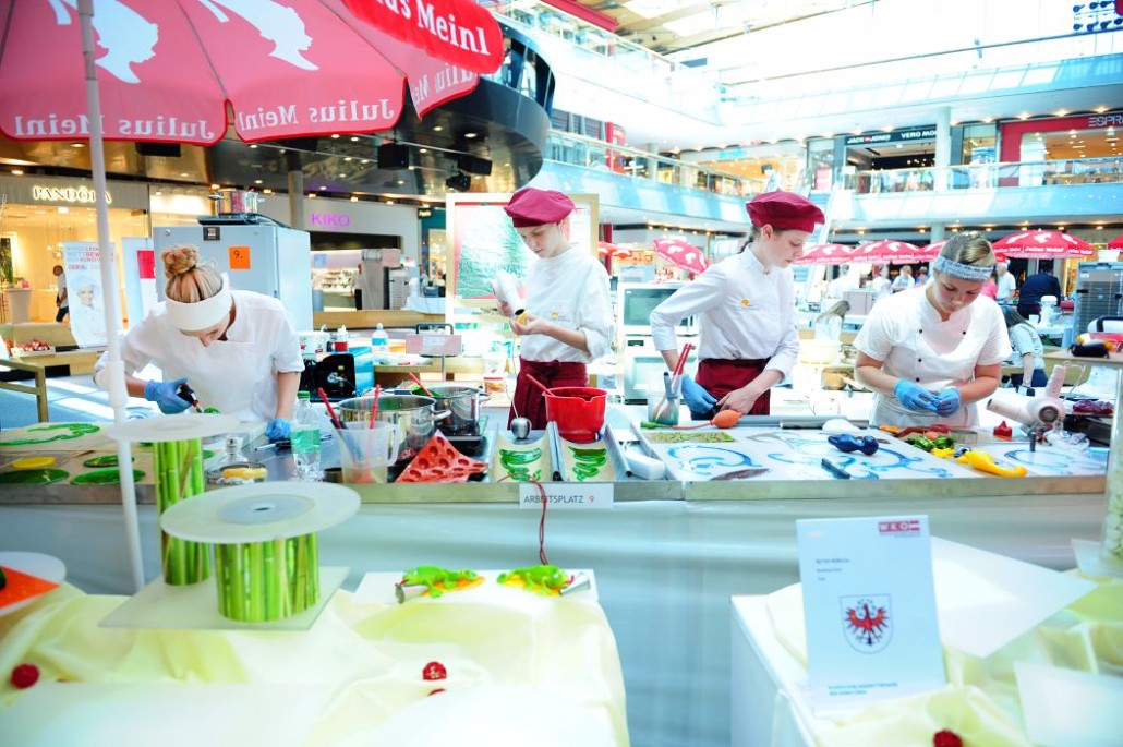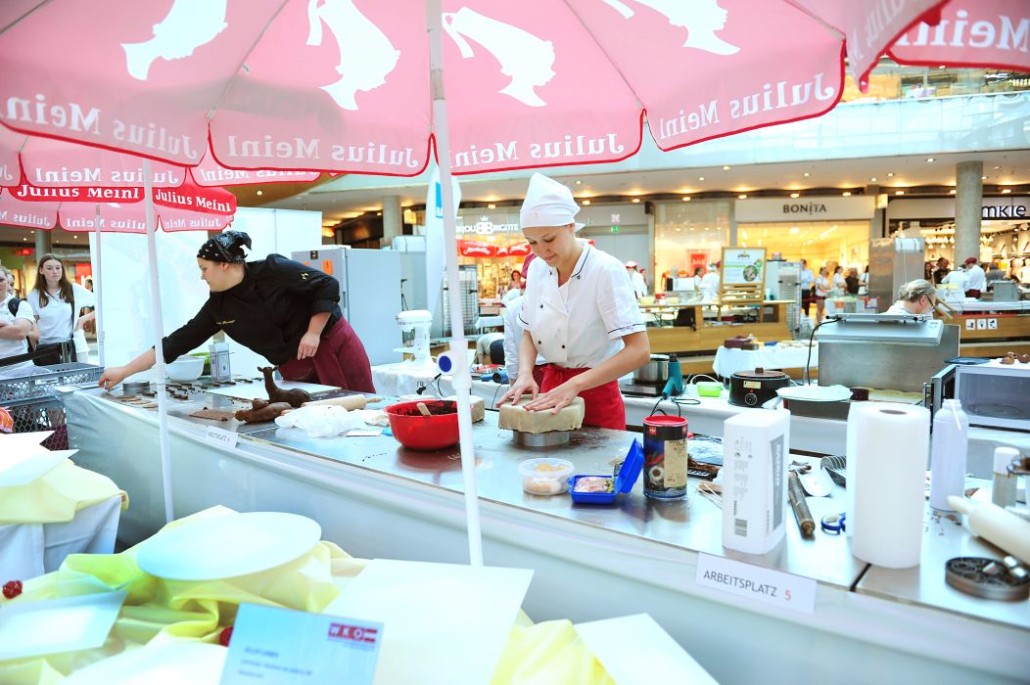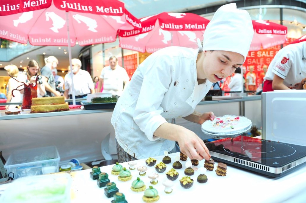 Der Bundeslehrlingswettbewerb der Konditoren fand dieses Jahr im ATRIO Shopping Center in Villach statt. 17 Konditorinnen aus allen neun Bundesländern kreierten Kunstwerke aus Schokolade, Zucker und Marzipan. Die ausschließlich weiblichen Teilnehmer behielten trotz Ablenkungen des Shopping Centers und regem Interesse der Besucher einen kühlen Kopf und zauberten großartige Kreationen in folgenden Kategorien: Aufsatztorten, Aufschnitt-Torten, Modellierarbeiten, Pralinen und Stückdesserts.