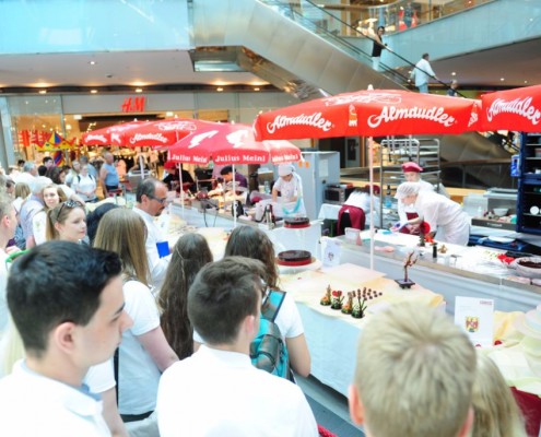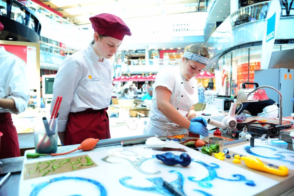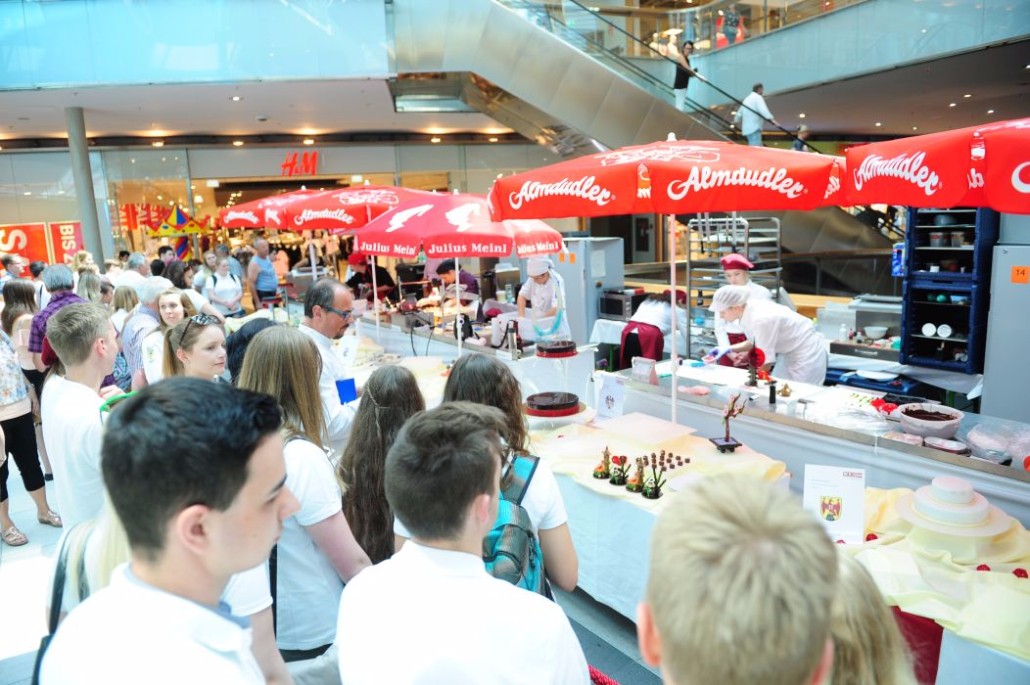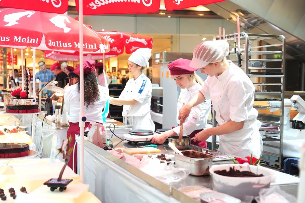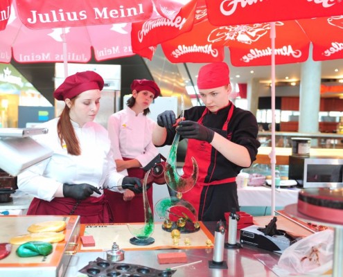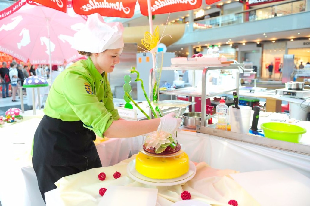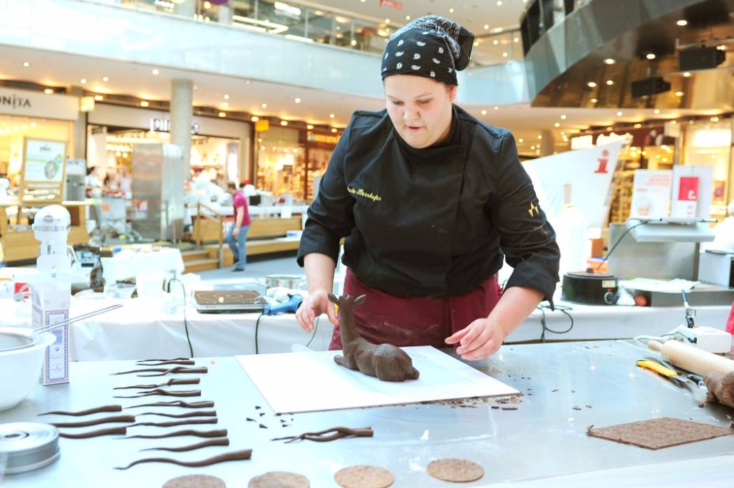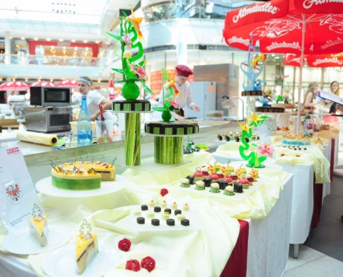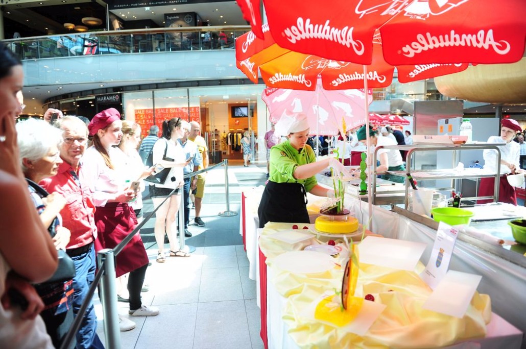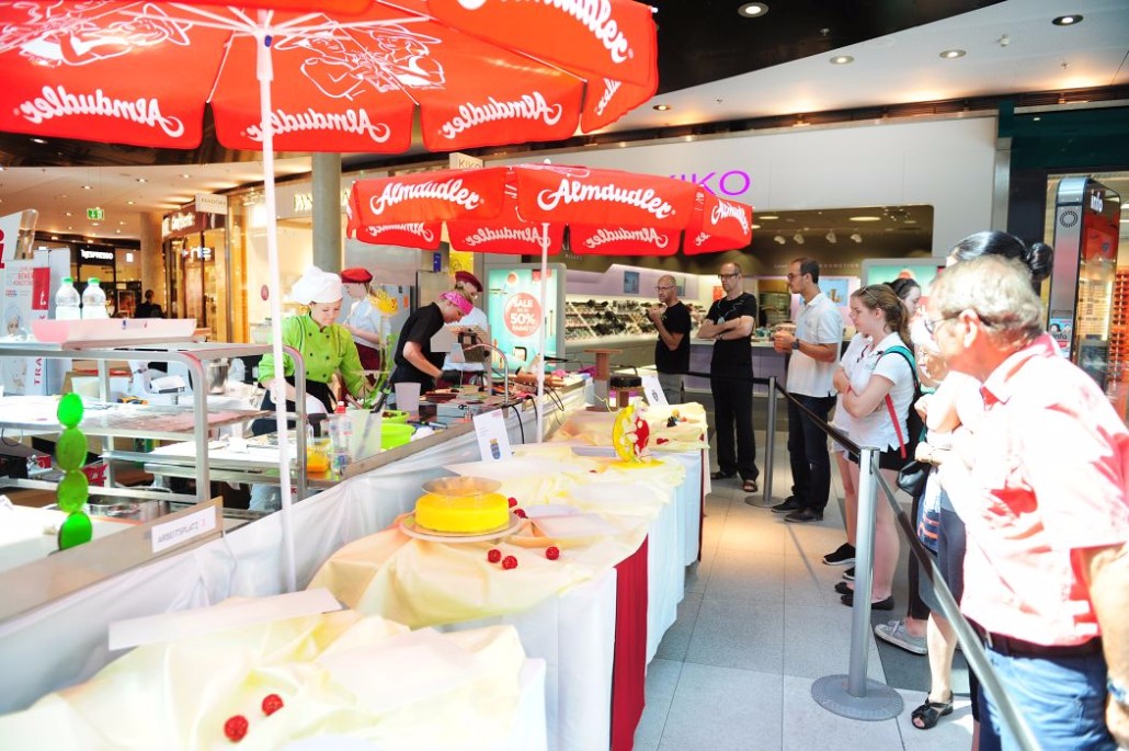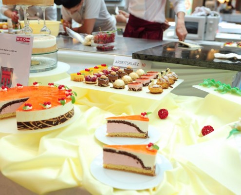 Der Bundeslehrlingswettbewerb der Konditoren fand dieses Jahr im ATRIO Shopping Center in Villach statt. 17 Konditorinnen aus allen neun Bundesländern kreierten Kunstwerke aus Schokolade, Zucker und Marzipan. Die ausschließlich weiblichen Teilnehmer behielten trotz Ablenkungen des Shopping Centers und regem Interesse der Besucher einen kühlen Kopf und zauberten großartige Kreationen in folgenden Kategorien: Aufsatztorten, Aufschnitt-Torten, Modellierarbeiten, Pralinen und Stückdesserts.