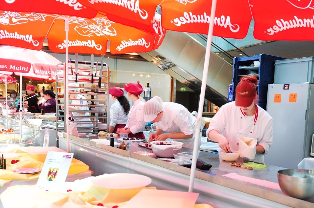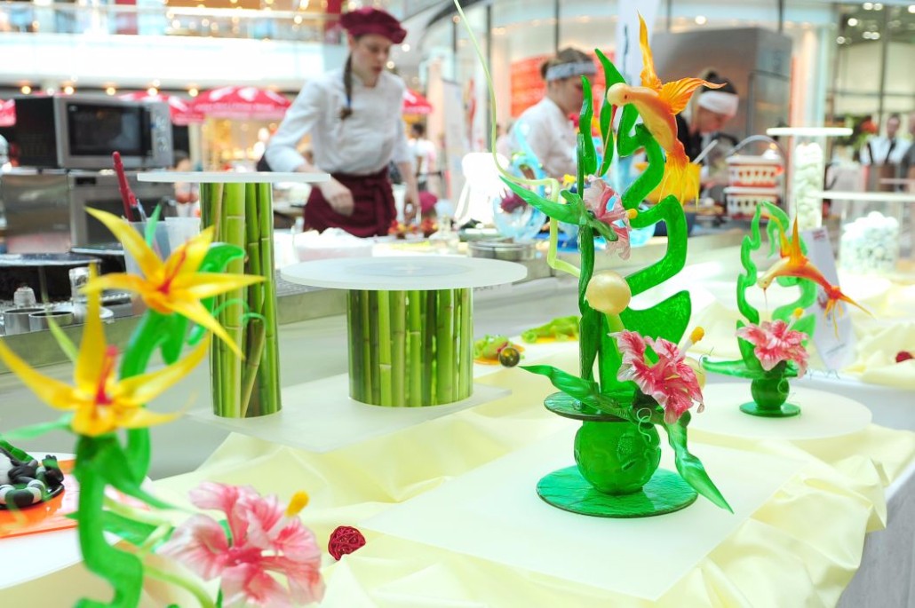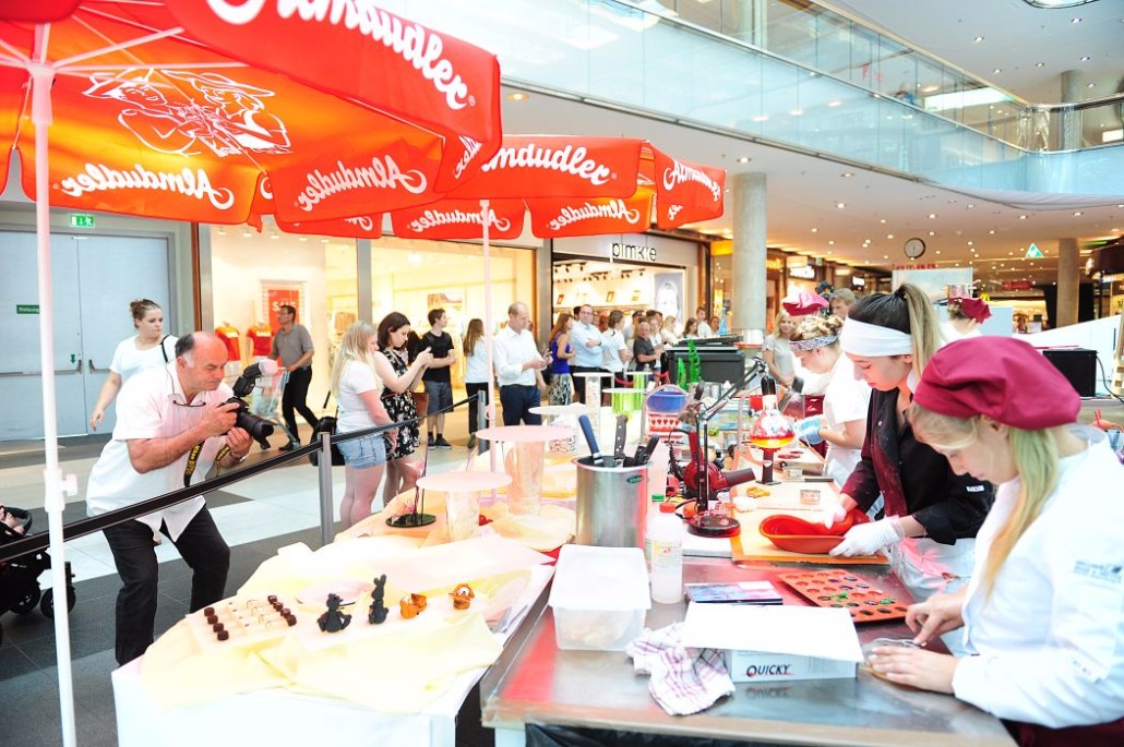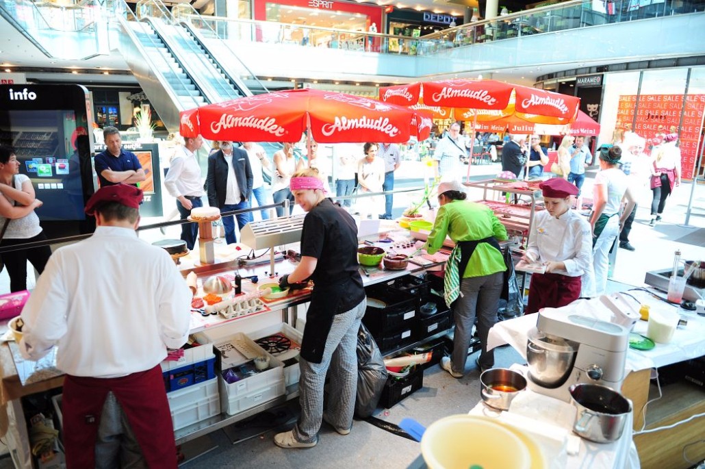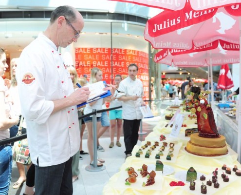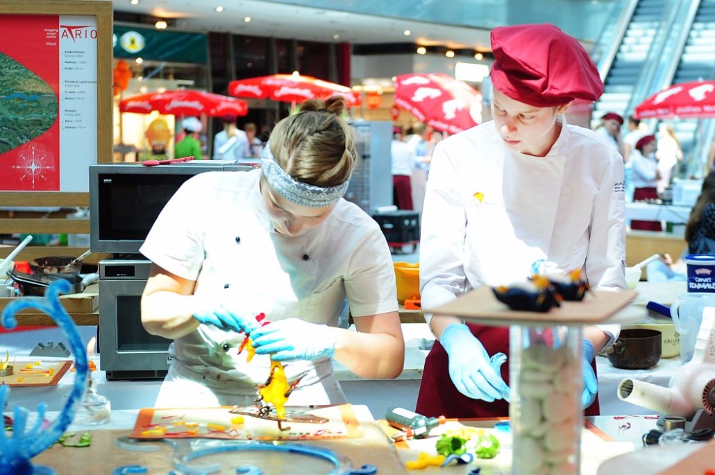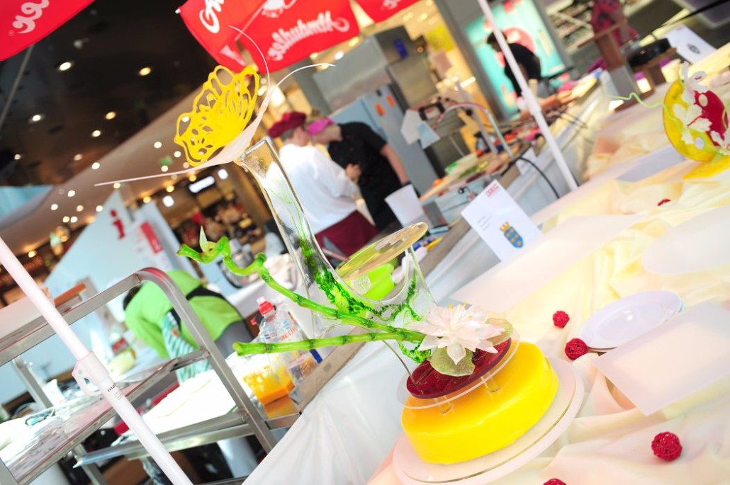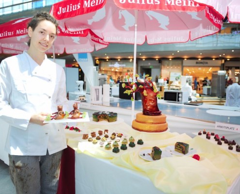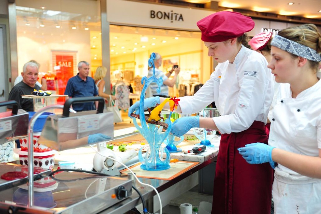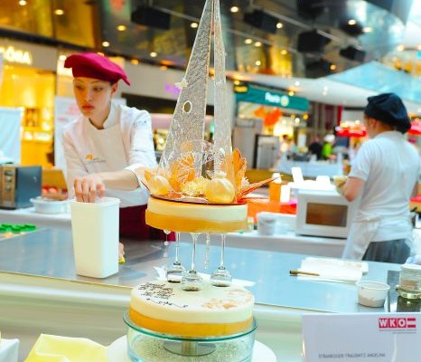 Der Bundeslehrlingswettbewerb der Konditoren fand dieses Jahr im ATRIO Shopping Center in Villach statt. 17 Konditorinnen aus allen neun Bundesländern kreierten Kunstwerke aus Schokolade, Zucker und Marzipan. Die ausschließlich weiblichen Teilnehmer behielten trotz Ablenkungen des Shopping Centers und regem Interesse der Besucher einen kühlen Kopf und zauberten großartige Kreationen in folgenden Kategorien: Aufsatztorten, Aufschnitt-Torten, Modellierarbeiten, Pralinen und Stückdesserts.