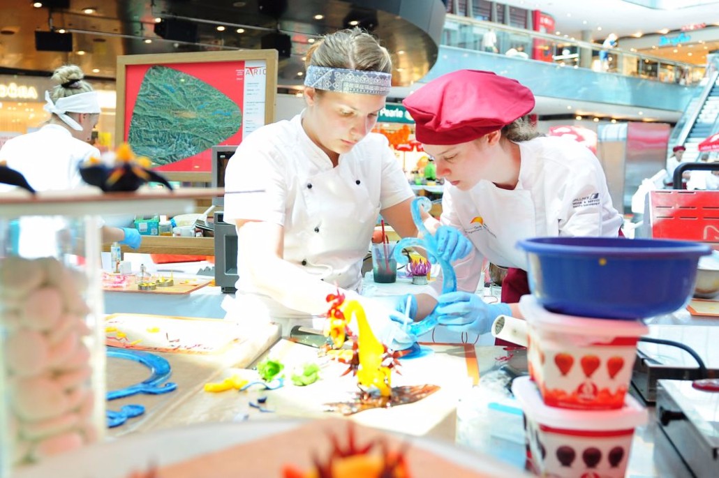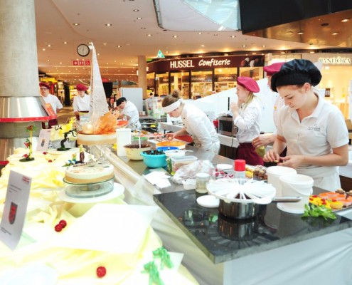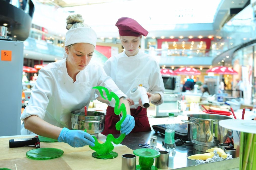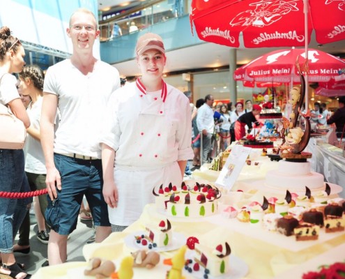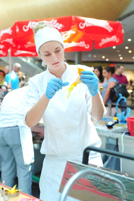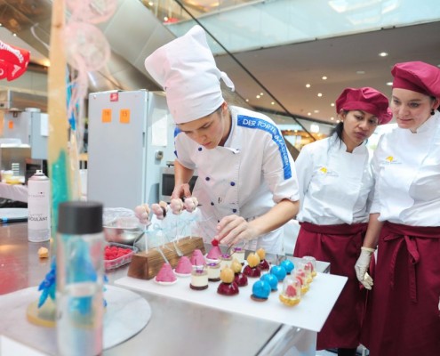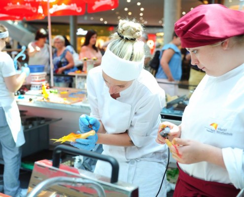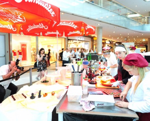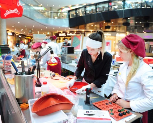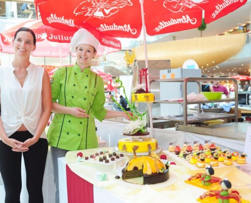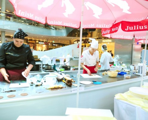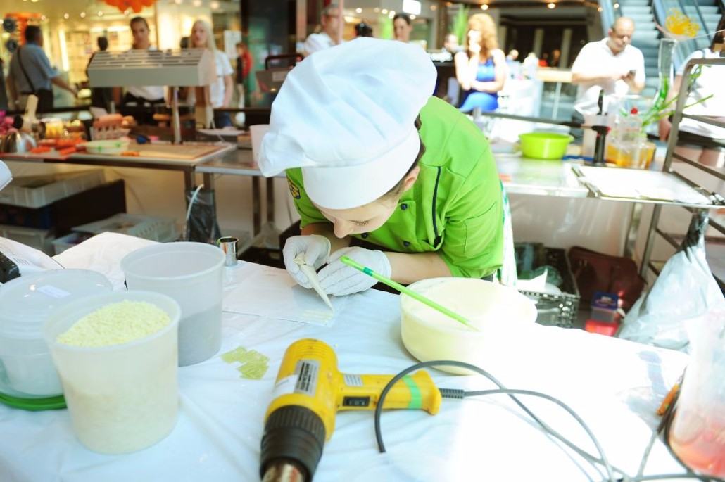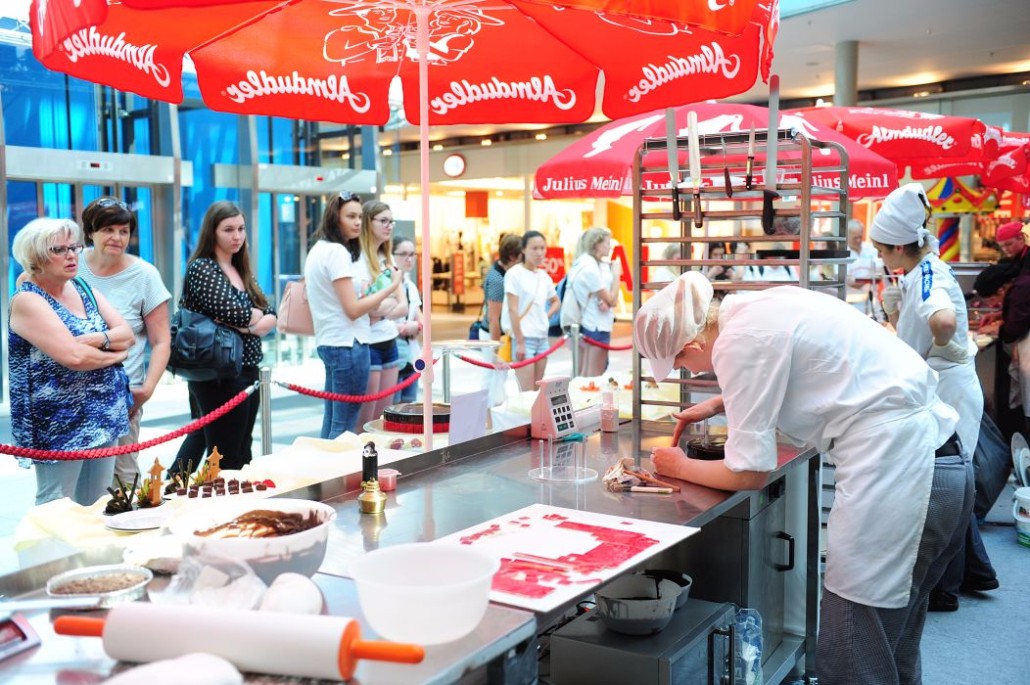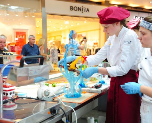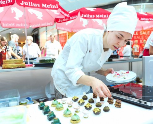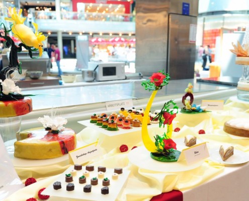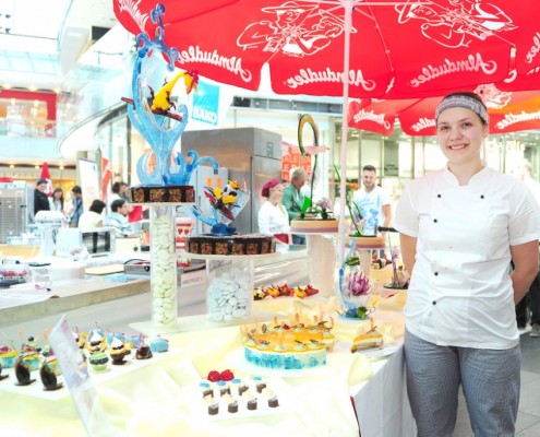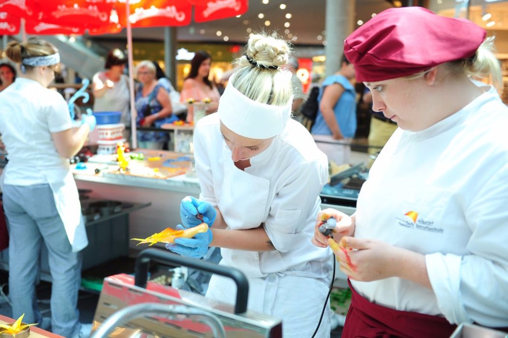 Der Bundeslehrlingswettbewerb der Konditoren fand dieses Jahr im ATRIO Shopping Center in Villach statt. 17 Konditorinnen aus allen neun Bundesländern kreierten Kunstwerke aus Schokolade, Zucker und Marzipan. Die ausschließlich weiblichen Teilnehmer behielten trotz Ablenkungen des Shopping Centers und regem Interesse der Besucher einen kühlen Kopf und zauberten großartige Kreationen in folgenden Kategorien: Aufsatztorten, Aufschnitt-Torten, Modellierarbeiten, Pralinen und Stückdesserts.