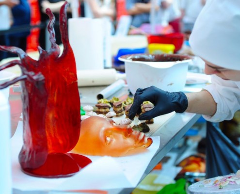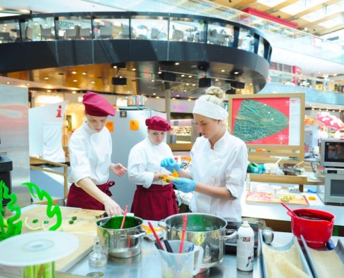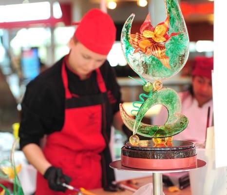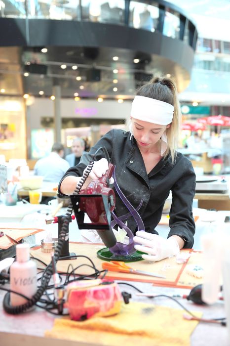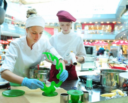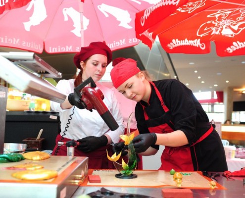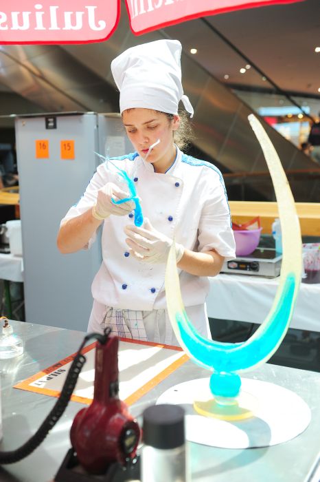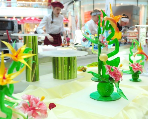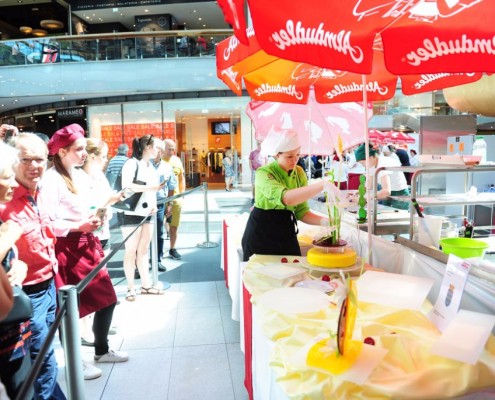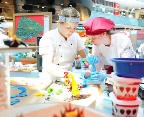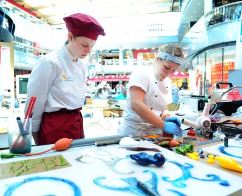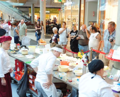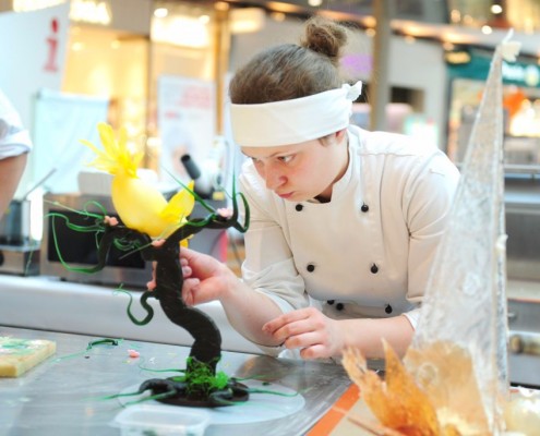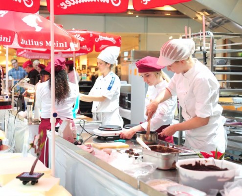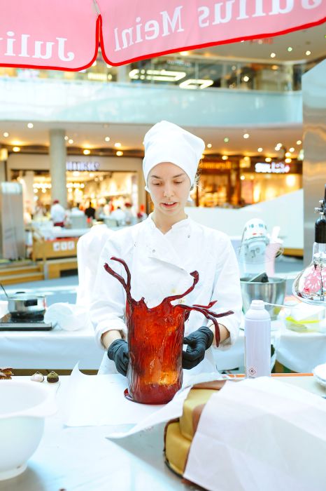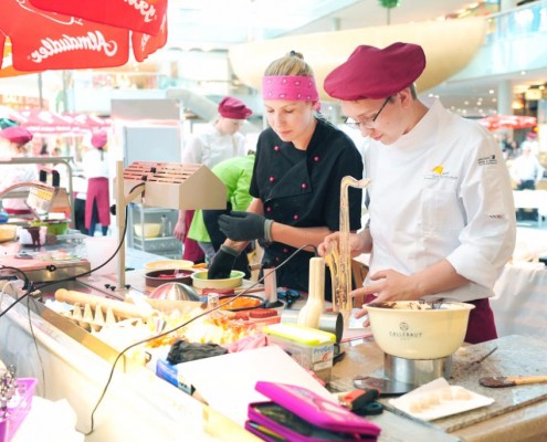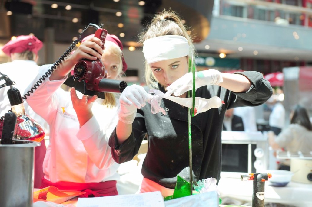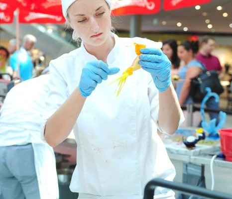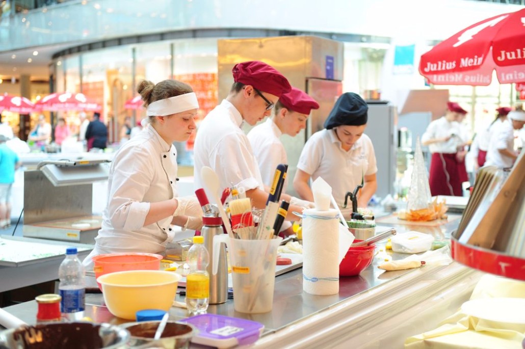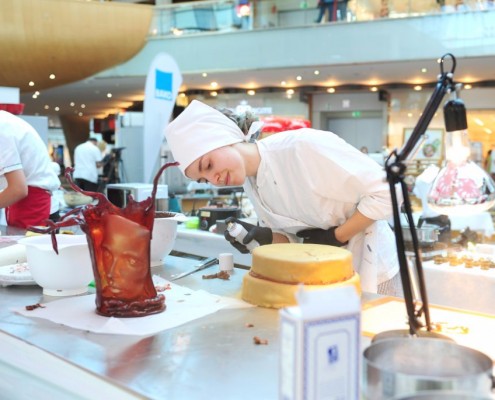 Der Bundeslehrlingswettbewerb der Konditoren fand dieses Jahr im ATRIO Shopping Center in Villach statt. 17 Konditorinnen aus allen neun Bundesländern kreierten Kunstwerke aus Schokolade, Zucker und Marzipan. Die ausschließlich weiblichen Teilnehmer behielten trotz Ablenkungen des Shopping Centers und regem Interesse der Besucher einen kühlen Kopf und zauberten großartige Kreationen in folgenden Kategorien: Aufsatztorten, Aufschnitt-Torten, Modellierarbeiten, Pralinen und Stückdesserts.