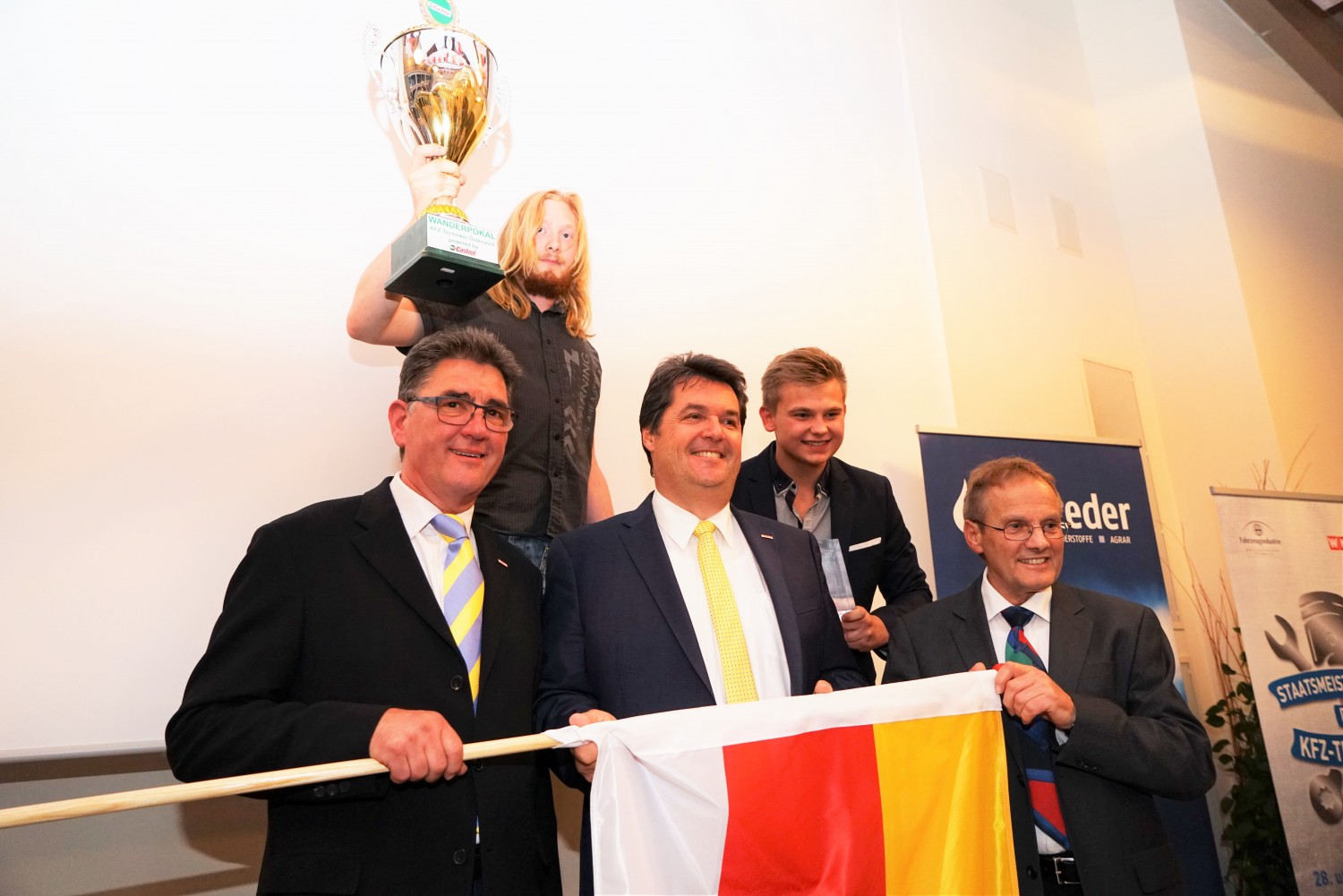 Glänzende Leistung unserer jungen Kfz-Techniker bei den Staatsmeisterschaften: Günther Weinberger vom Autohaus Grohs siegte und Tobias Vecsei vom Autohaus Oskar Dörfler wurde Dritter.
