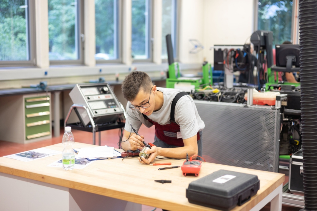 In Zusammenarbeit mit der Fachberufsschule Villach 2 erstellte die Landesinnung der Fahrzeugtechnik höchst anspruchsvolle technische Stationen: Feststellung der Motorgrundeinstellung, Erstellung einer Diagnose der Bremsanlage und des ABS, Komplettierung des Schaltplans einer Lichtanlage sowie Ermittlung des eingebauten Fehlers in der Getriebetechnik/Kupplung bei einem Motorrad. Das Niveau der Gesamtleistungen konnte sich sehen lassen und zeigte, was in den jungen Fachkräften steckt. „Die Lehrlinge zeigten einen fantastischen Einsatzwillen, der in Kombination mit der qualitativ hochwertigen Ausbildung ihrer Lehrbetriebe und der herausragenden Unterstützung des Teams der Fachberufsschule Villach 2 rund um Siegfried Kröpfl zu spüren war“, lobte Michael Schnabl, Landesinnungsmeister der Fahrzeugtechnik.