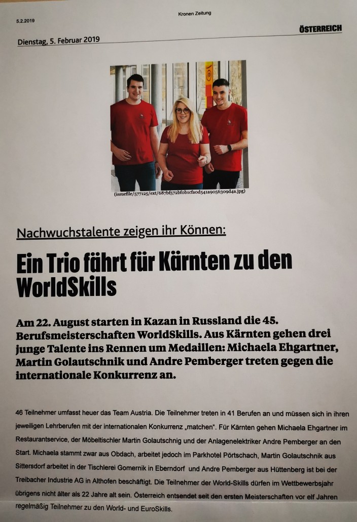Du bist hier: Startseite1 / Pressespiegel2 / Kronen Zeitung3 / Kronen Zeitung 05.02.2019 | WorldSkills in Kazan
