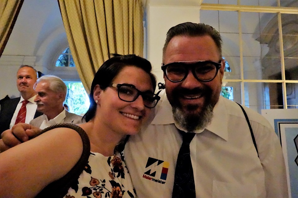 Woher wir das wissen? Vom gestrigen Bundeslehrlingswettbewerb der Maler im Schloß Leopoldskron/Salzburg. „Mentor des Jahres 2017“.