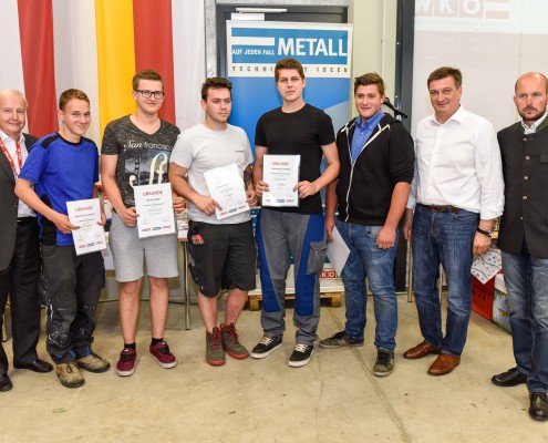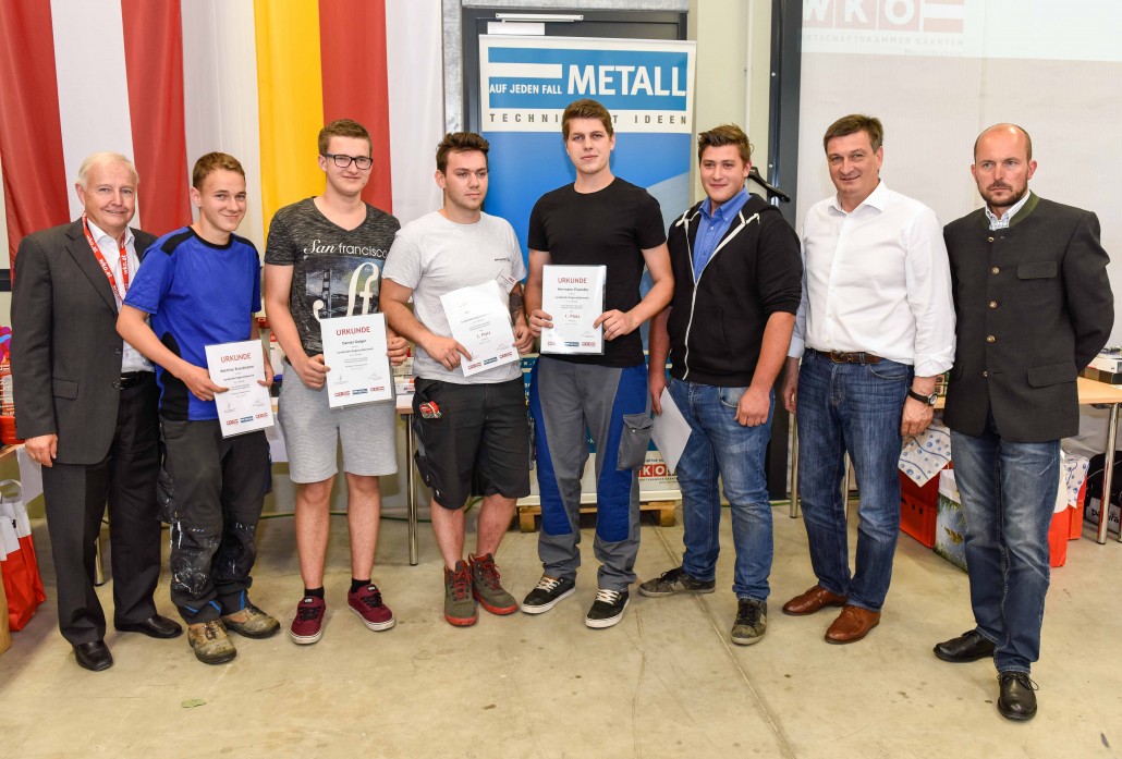 Unterschiedlicher könnten die Sieger in den vier Branchen-Wettbewerben kaum sein: 780 Mitarbeiter sind beim Arbeitgeber von Manuel Kraxner, der Treibacher Industrie AG, beschäftigt. Er erarbeitete sich den Sieg in dem Wettbewerb mit den meisten Teilnehmern, den Zerspanungstechnikern im dritten Lehrjahr. Stefan Goldschmied, Sieger bei den Schmiedetechnikern im dritten Lehrjahr, hingegen wird in der Kunstschmiede Wieland in Hüttenberg von seinem Chef persönlich ausgebildet. Auch Otto Wassermann und Raphael Egarter, Sieger bei den Landmaschinentechnikern und Metallbearbeitungstechnikern, stammen aus Gewerbebetrieben. Damit hat sich auch heuer wieder eine Balance zwischen den Lehrlingen aus Gewerbe- sowie Industriebetrieben gezeigt.