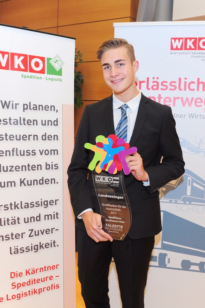 In Kärnten fand kürzlich auf Initiative der Fachgruppe Spedition und Logistik zum zweiten Mal ein Landeslehrlingswettbewerb für Spediteure und Logistiker statt. Magdalena Lechner von Gebrüder Weiss gewann den 1. Platz, der 2. Platz ging an Stefanie Karl von DB Schenker und auf den 3. Platz schaffte es David Unegg von Gebrüder Weiss. Nico Maier von DB Schenker ist der strahlende AustriaSkills-Gewinner.