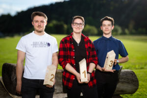 Sieger des 3. Lehrjahres. Vinzent Paul Stelle (Platz 2), Gewinner Klemens Reinfried und die Drittplatzierte Katharina Mandler.
