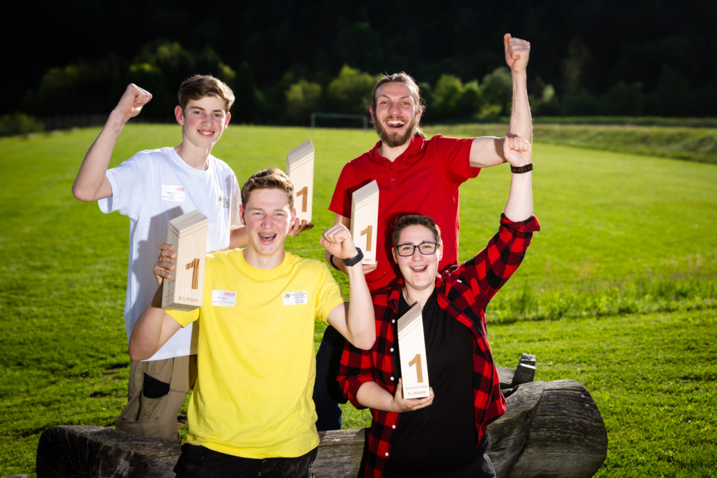 Sieger des 3. Lehrjahres. Vinzent Paul Stelle (Platz 2), Gewinner Klemens Reinfried und die Drittplatzierte Katharina Mandler.