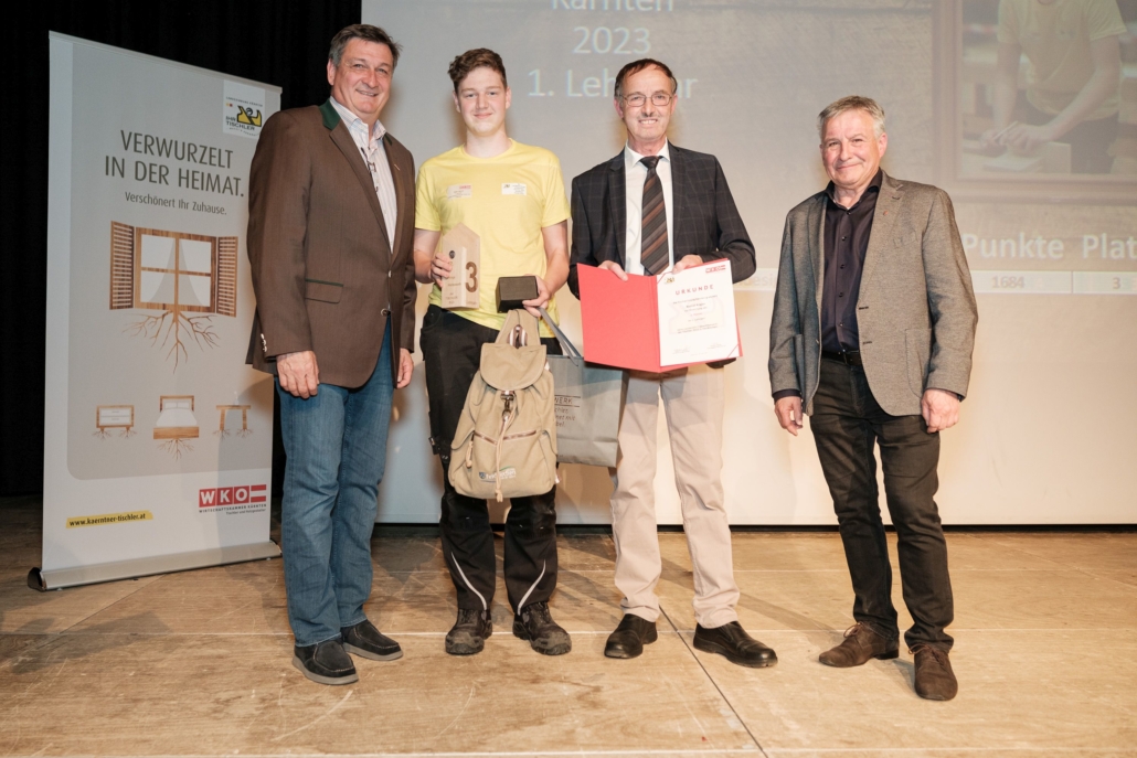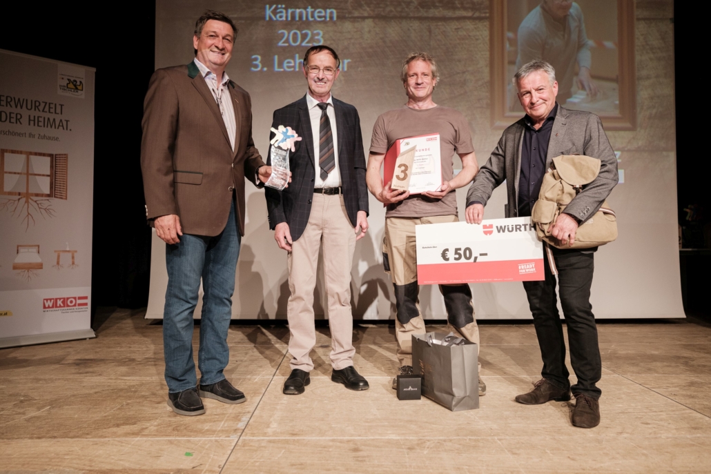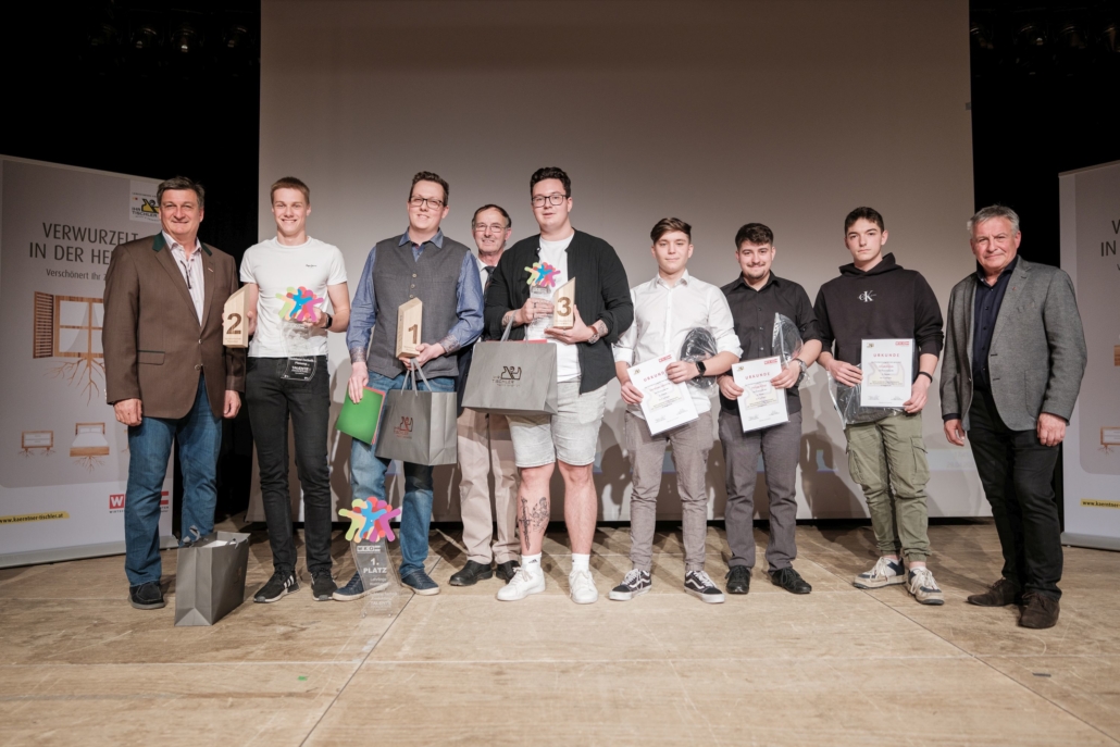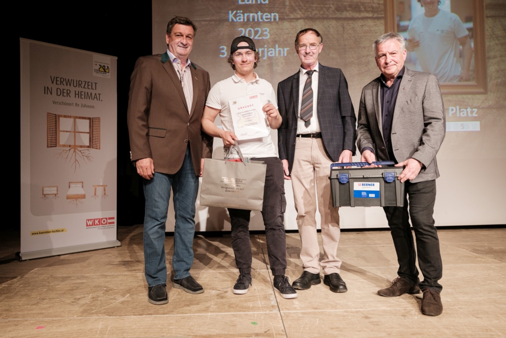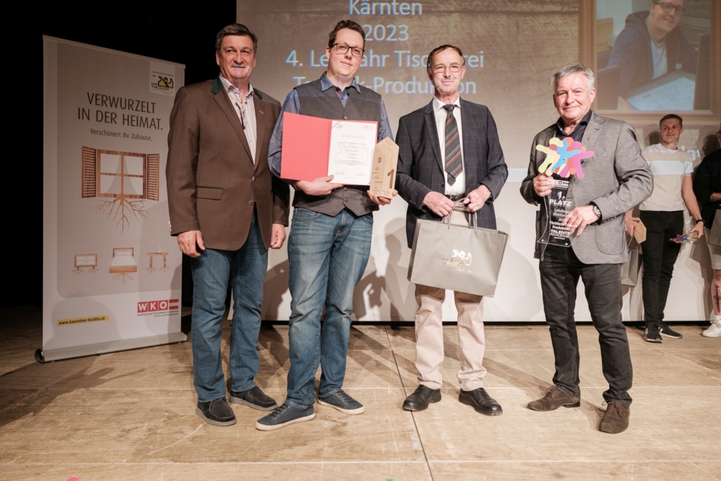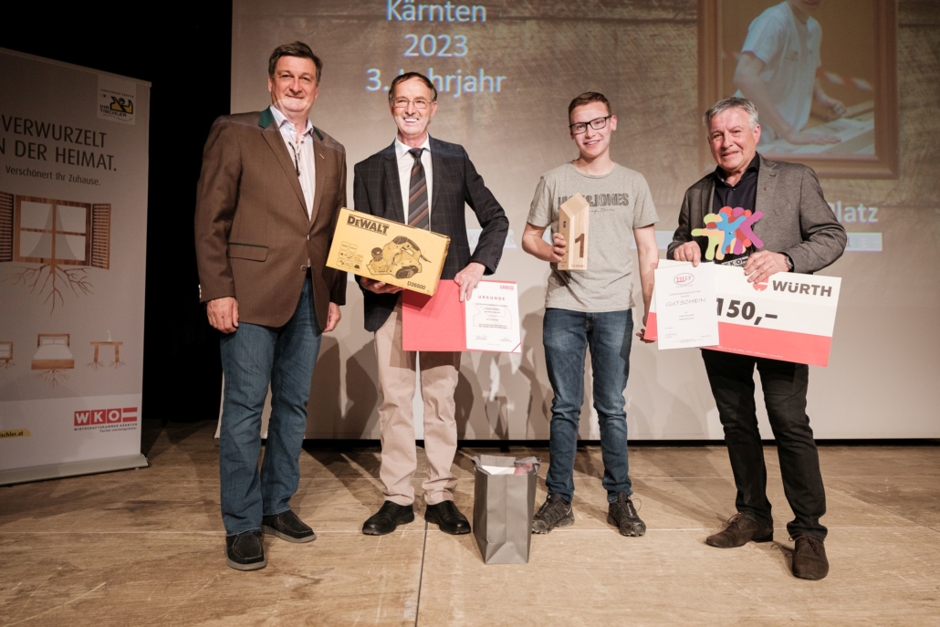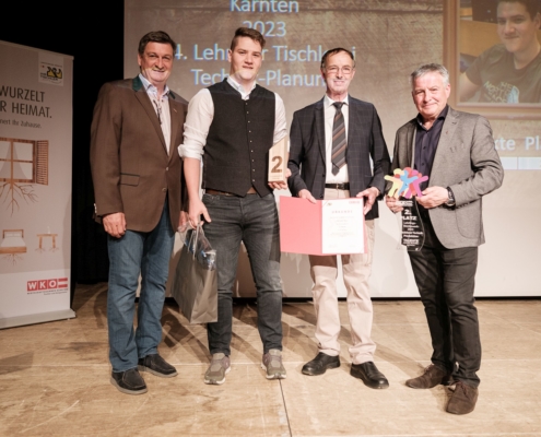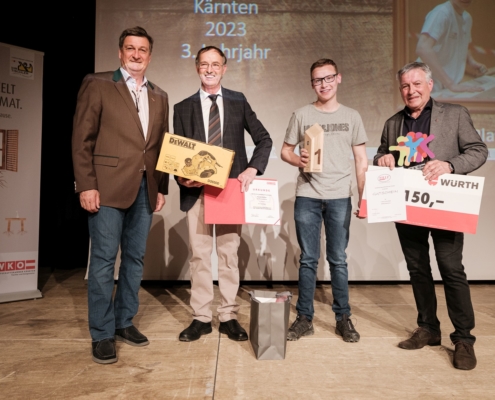 Nicht nur ein sicherer und geschickter Umgang mit Hobel und Säge, sondern vor allem Begeisterung für das Arbeiten mit Holz – das war beim diesjährigen Landeslehrlingswettbewerb in Feldkirchen und Klagenfurt gefragt. Die Siegerehrung wurde im Beisein von WKK Präsident Jürgen Mandl und dem Landtagsabgeordneten Rene Willegger durchgeführt