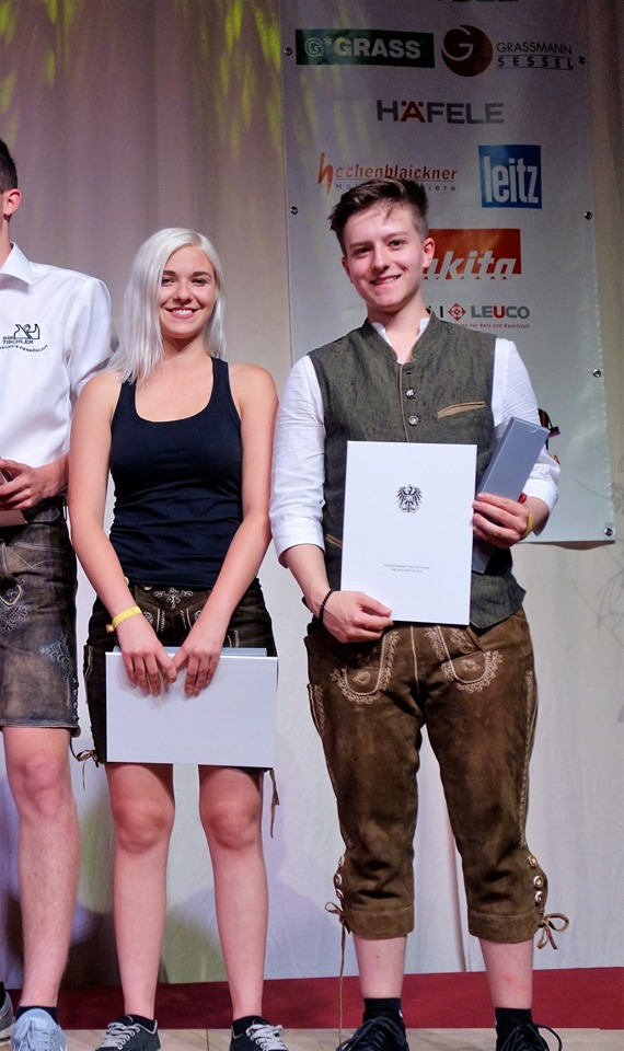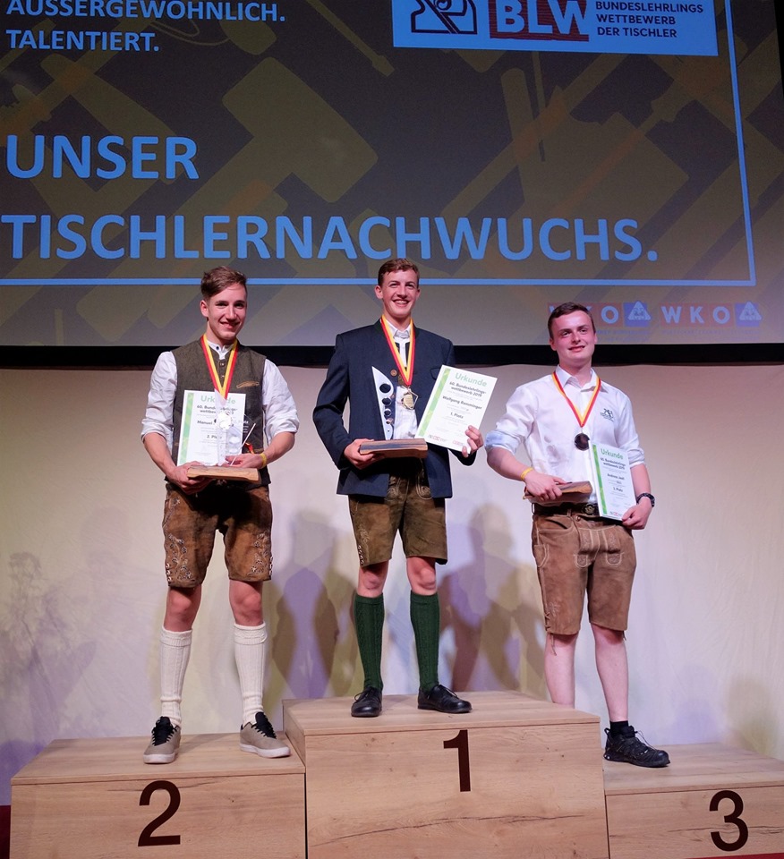 Manuel KEUSCHNIG – zum dritten mal schon dabei – hat es im 3. Lehrjahr auf PLATZ 2 geschafft. Ein Traumergebnis. Da freute sich Chefin Christa GRAF und Juniorchef Tobias GRAF zusammen mit den Eltern und einigen anderen Mitarbeitern der Fa. Tischlerei Lagger-Graf, die alle extra angereist waren.