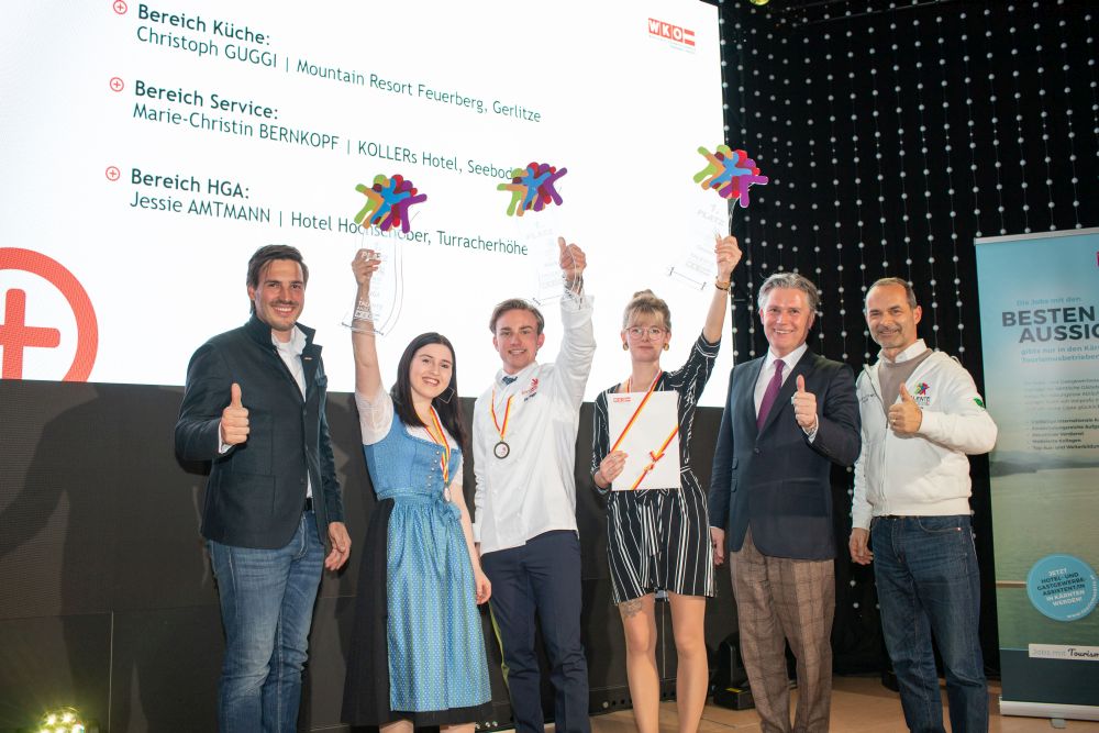 - Den Landessieg im Bereich Küche holte sich Christoph Guggi vom Mountain Resort Feuerberg. Er befindet sich im 2. Lehrjahr. Die Plätze 2 und 3 gingen an Kathleen Glabatsch und Leonie Podesser, beide machen ihre Lehre im Hotel Das Moerisch in Seeboden.