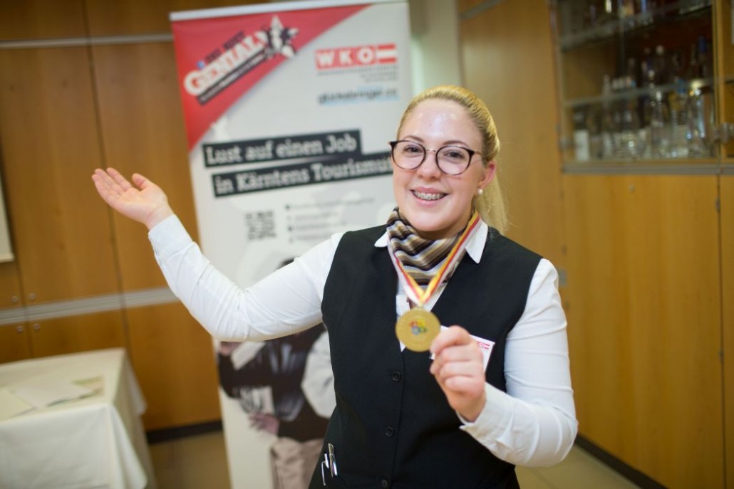 Der Landessieg im Bereich Service ging an Michaela Ehgartner, sie lernt im Parkhotel Pörtschach und befindet sich im 3. Lehrjahr.
