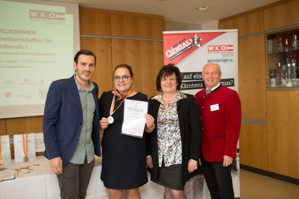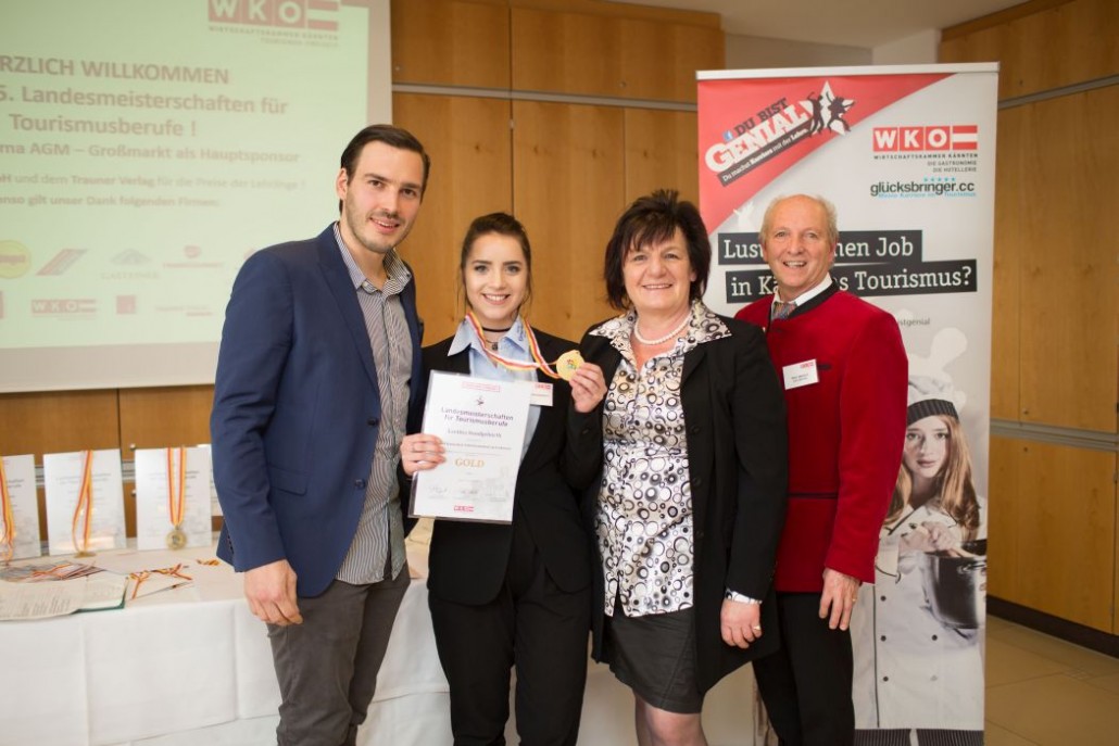 Im Bereich Rezeption (Lehrberuf Hotel- und GastgewerbeassistentIn) ist als Landessiegerin Frau Laetitia Hundgeburth vom Hotel Karnerhof in Drobollach am Faakersee hervorgegangen. Sie befindet sich im 2. Lehrjahr.