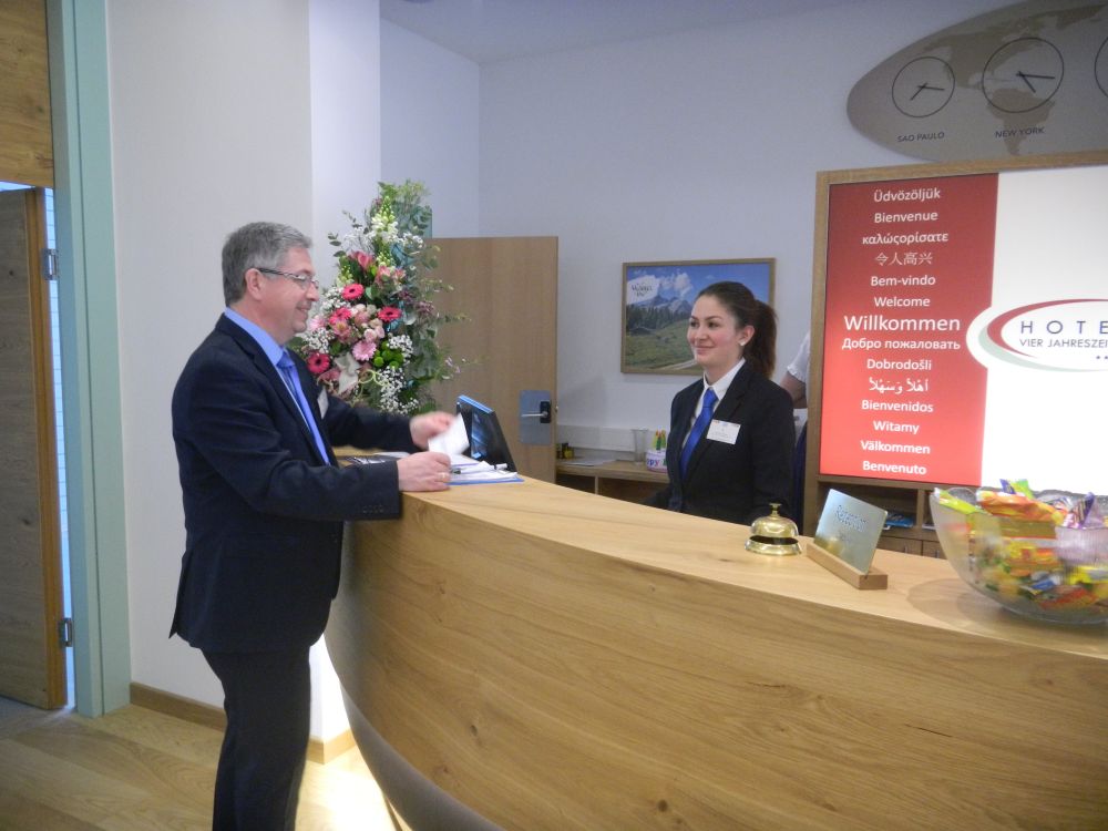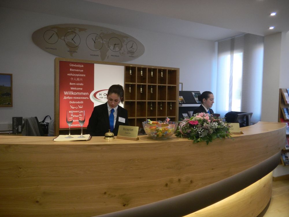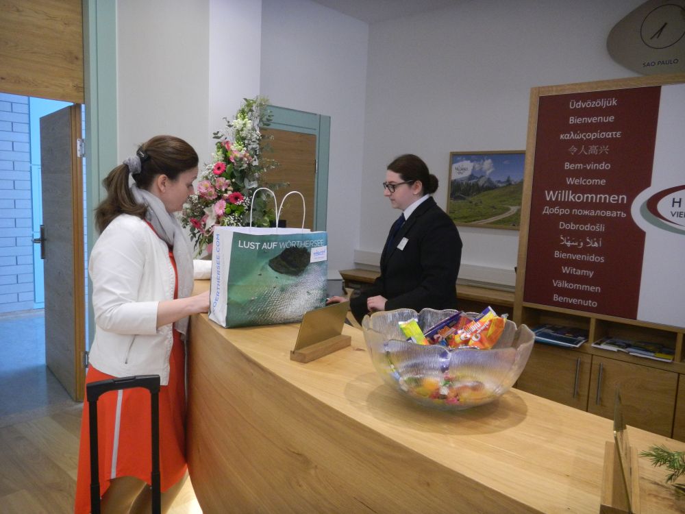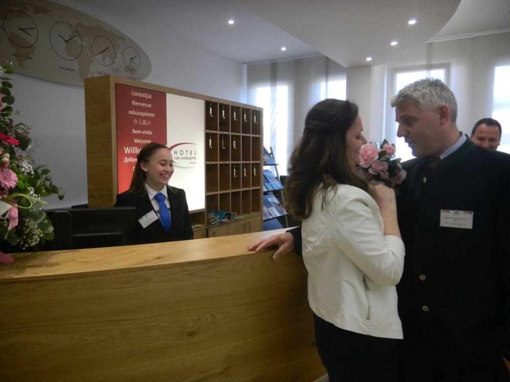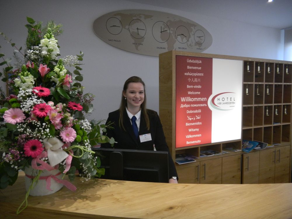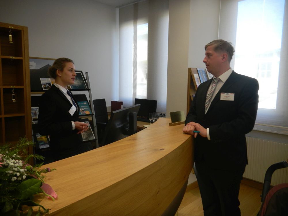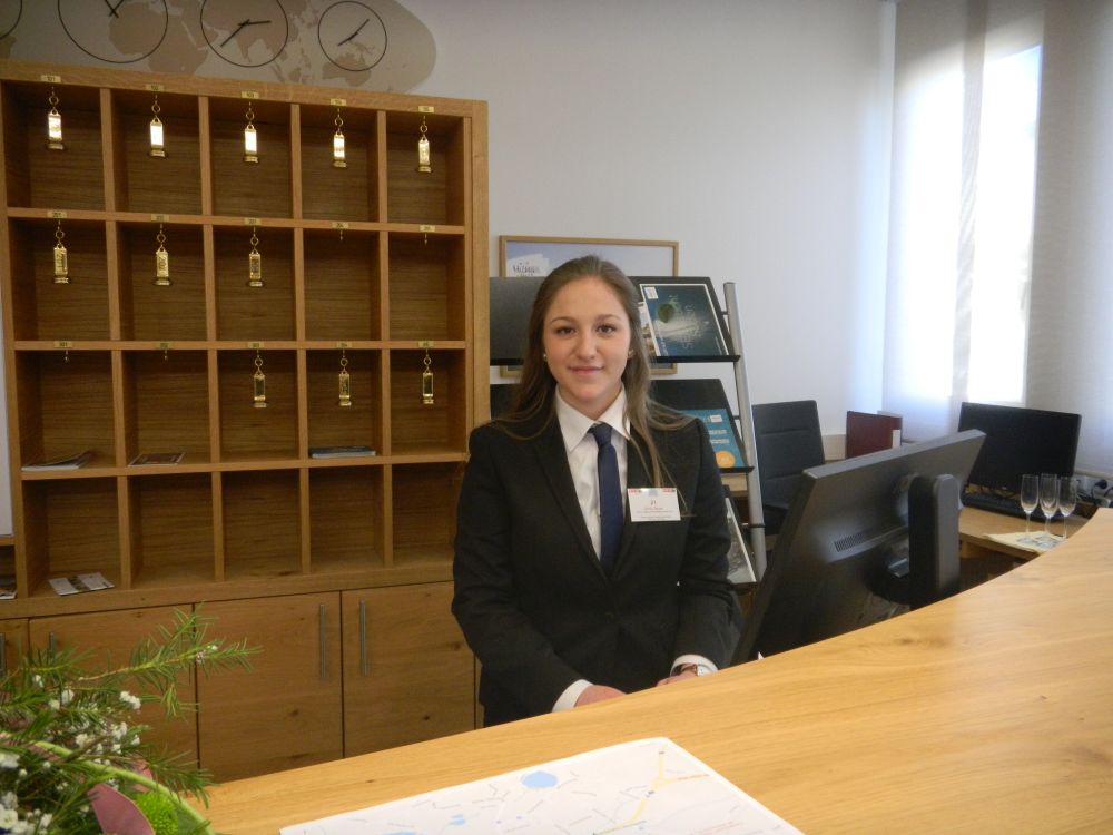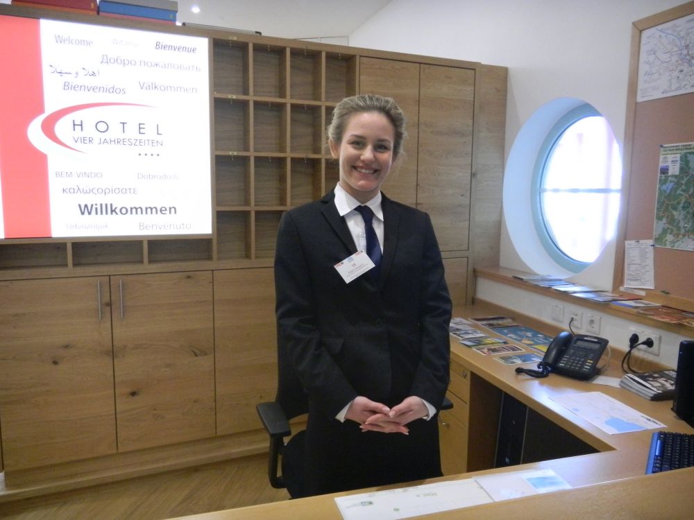 Magdalena Schachner, HGA-Lehrling im Hotel Kollers am Millstätter See, schaffte es bei den Tourismus-Staatsmeisterschaften ebenfalls aufs Stockerl. Über den Wettbewerb sagt sie: „Man macht eigentlich dieselbe Arbeit, wie sonst auch. Eine große Herausforderung ist aber, dass man dabei von der Jury beobachtet wird.“ Am Foto zu sehen ist sie mit ihrem Chef, Hubert Koller.