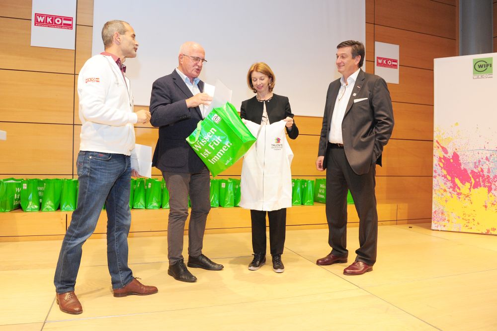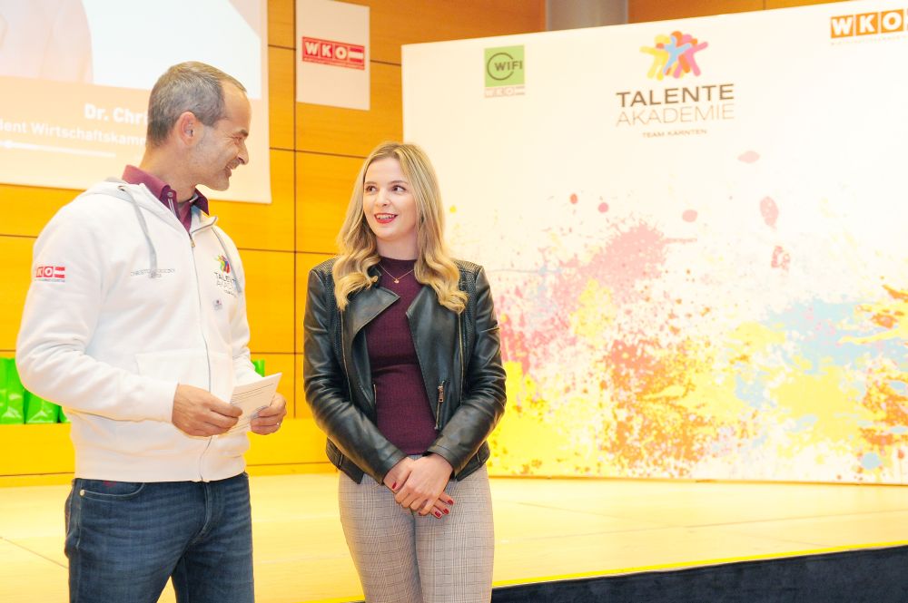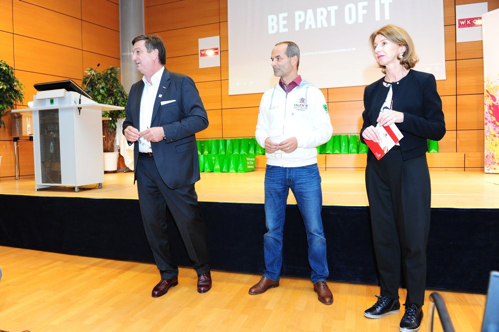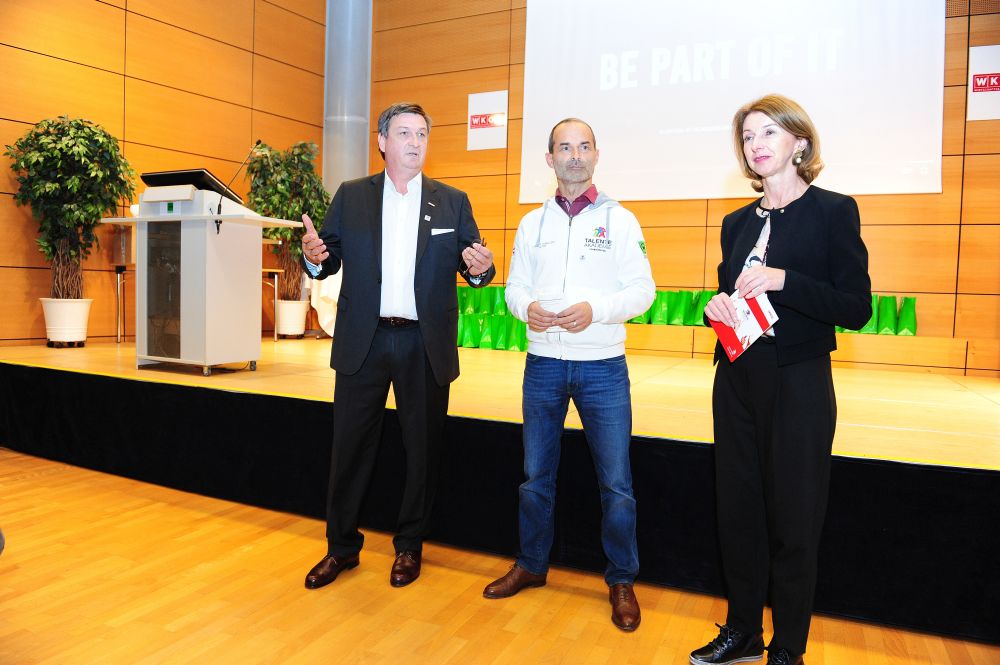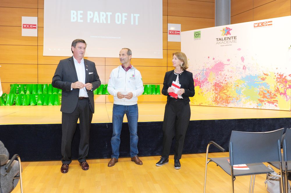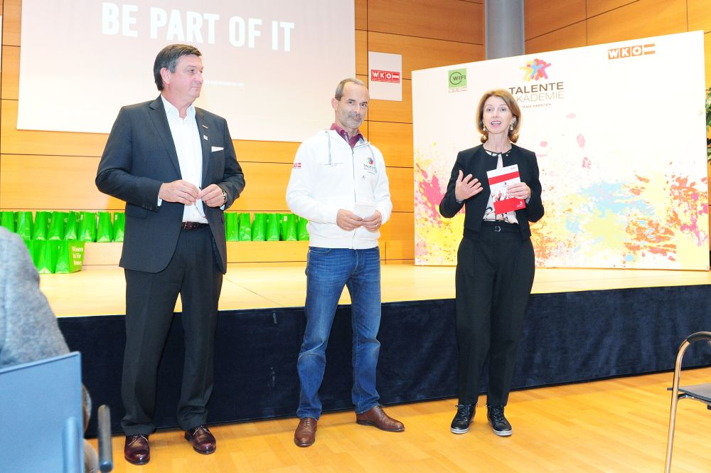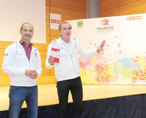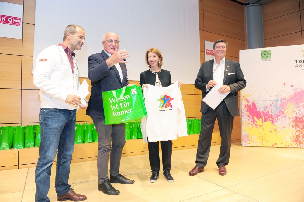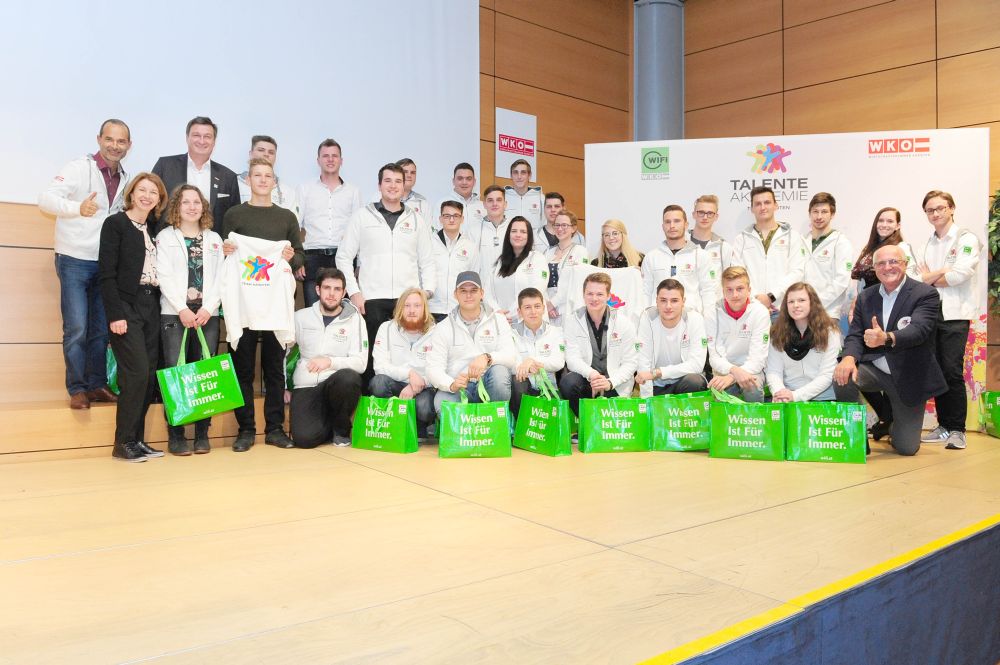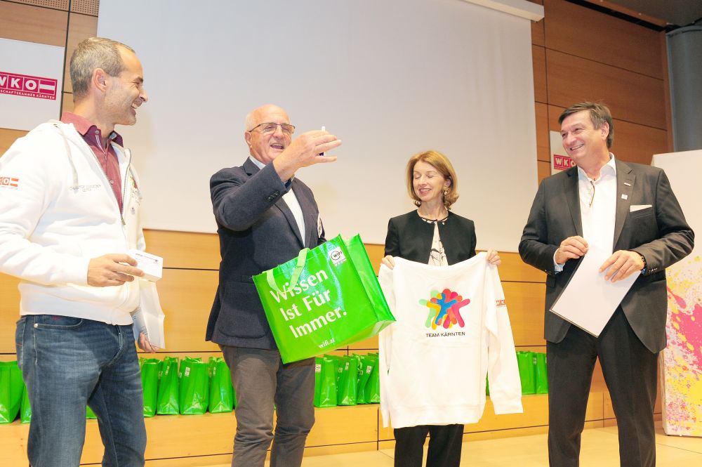 46 Teilnehmer in 18 verschiedenen Disziplinen: alle vereint im Kärntner Staatsmeisterschaftskader 2018 der Talenteakademie der Wirtschaftskammer Kärnten. Beim gestrigen Teamtreffen wurden die Teilnehmer von Wirtschaftskammerpräsident Jürgen Mandl mit den Teamoutifts ausgestattet. „Diese jungen Menschen nehmen nicht an irgendeinem Wettbewerb teil – diese Talente sind Botschafter für einen erfolgreichen Bildungsweg. Sie sind leistungsbewusst, stehen mitten im Leben und haben Erfolg. Das ist mit der Lehre möglich“, freut sich Mandl.