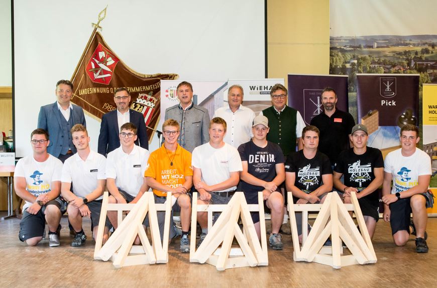 Zum Bundesentscheid traten heuer insgesamt 25 Zimmererlehrlinge (16 zum Bundeslehrlingswettbewerb, 9 zum Parallelwettbewerb) an. Gefordert waren die jungen Zimmerer bei einem anspruchsvollen Projekt. Sie mussten ein Gratmodell eines Erkerdachs bei ungleicher Dachneigung laut Plan austragen und abbinden. Zu ihren Leistungen gratulierten den erfolgreichen Lehrlingen neben Bundesinnungsmeister Siegfried Fritz und Landesinnungsmeister Josef Frauscher auch der Braunauer WK-Obmann Klemens Steidl, LAbg. Klaus Mühlbacher und Bürgermeister Georg Gattringer.